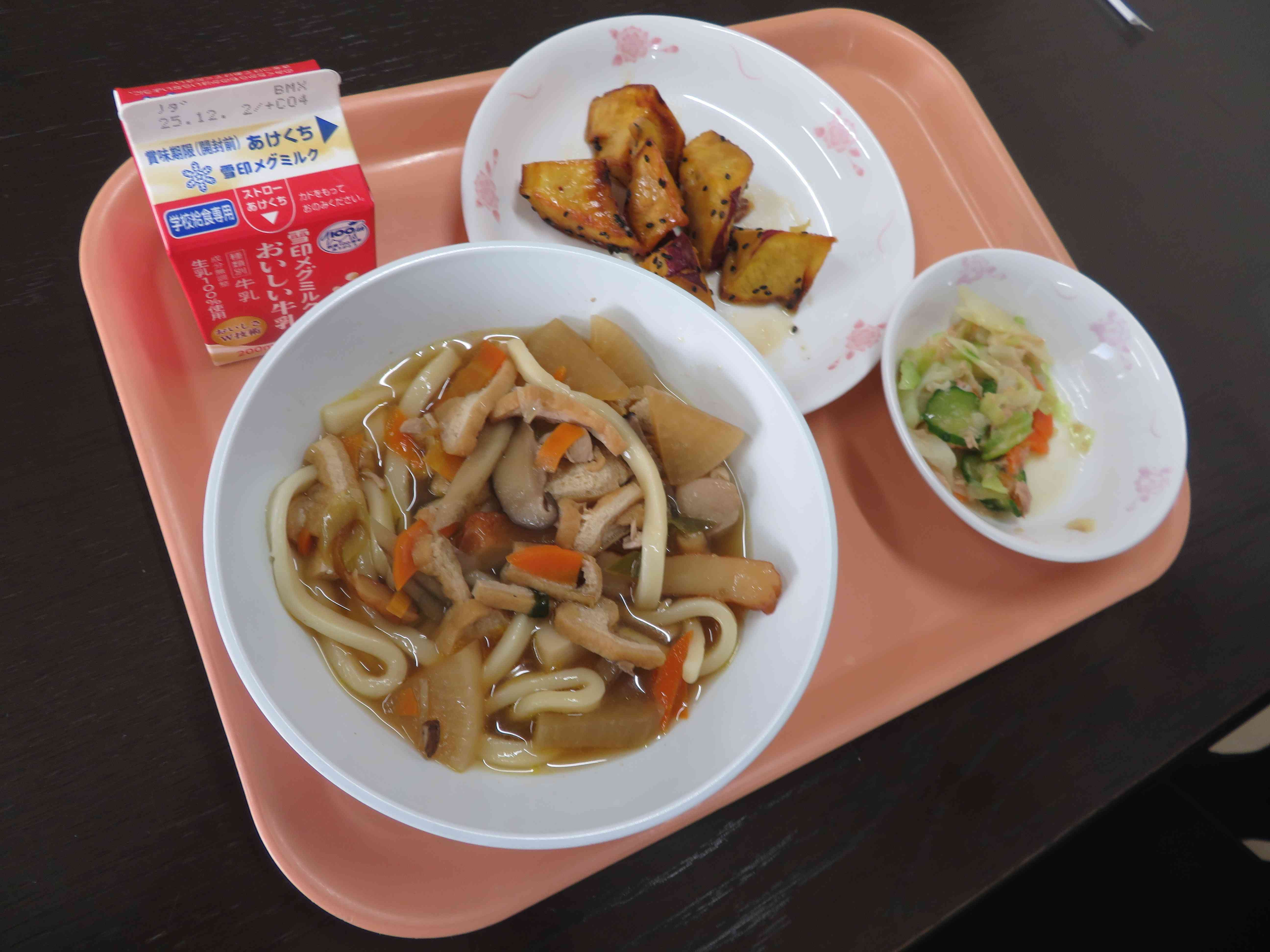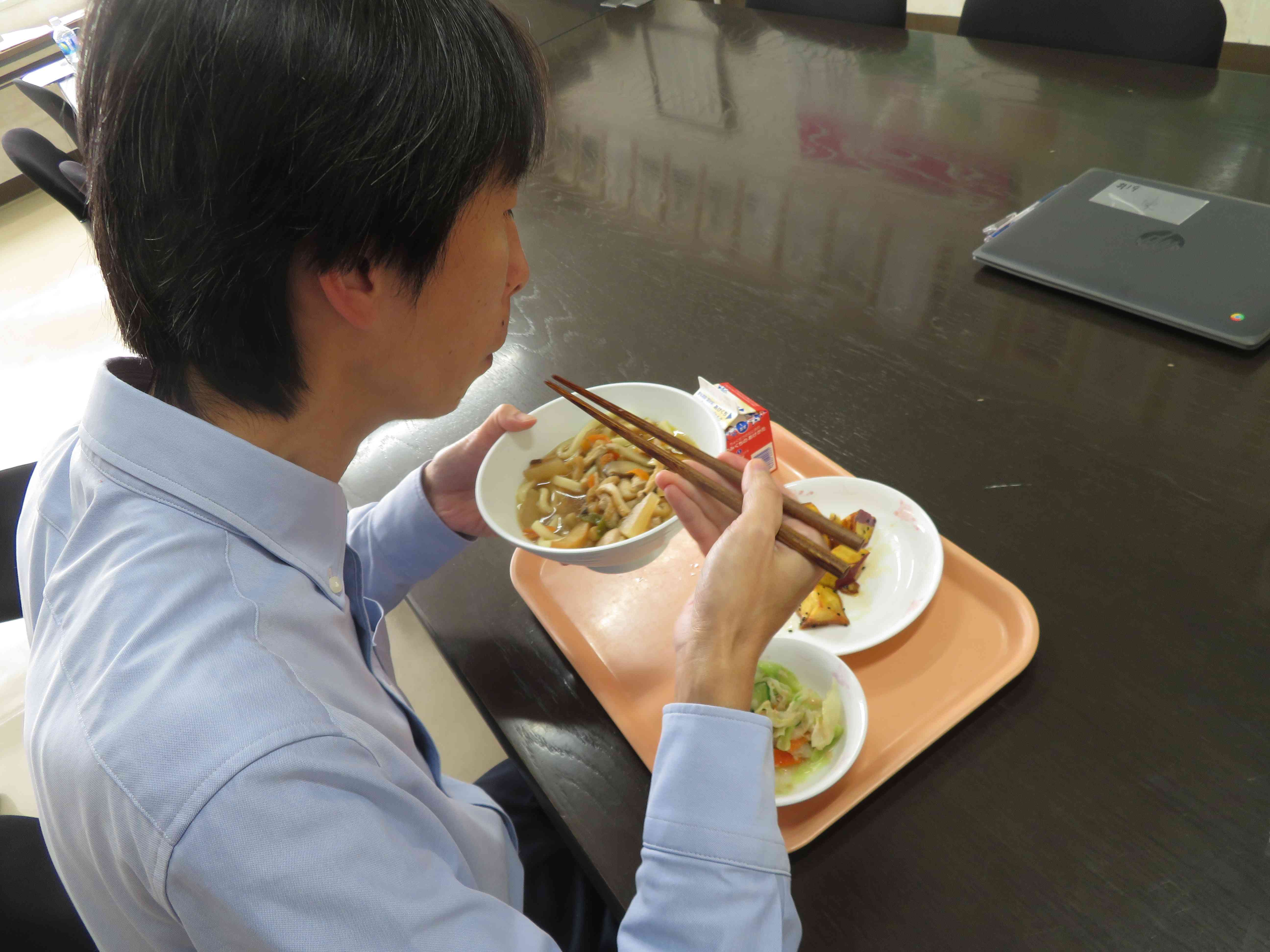 給食を食べた副校長先生の感想は 「うどんがとても美味しかったです。おかわりしたいくらい。」とのことでした。