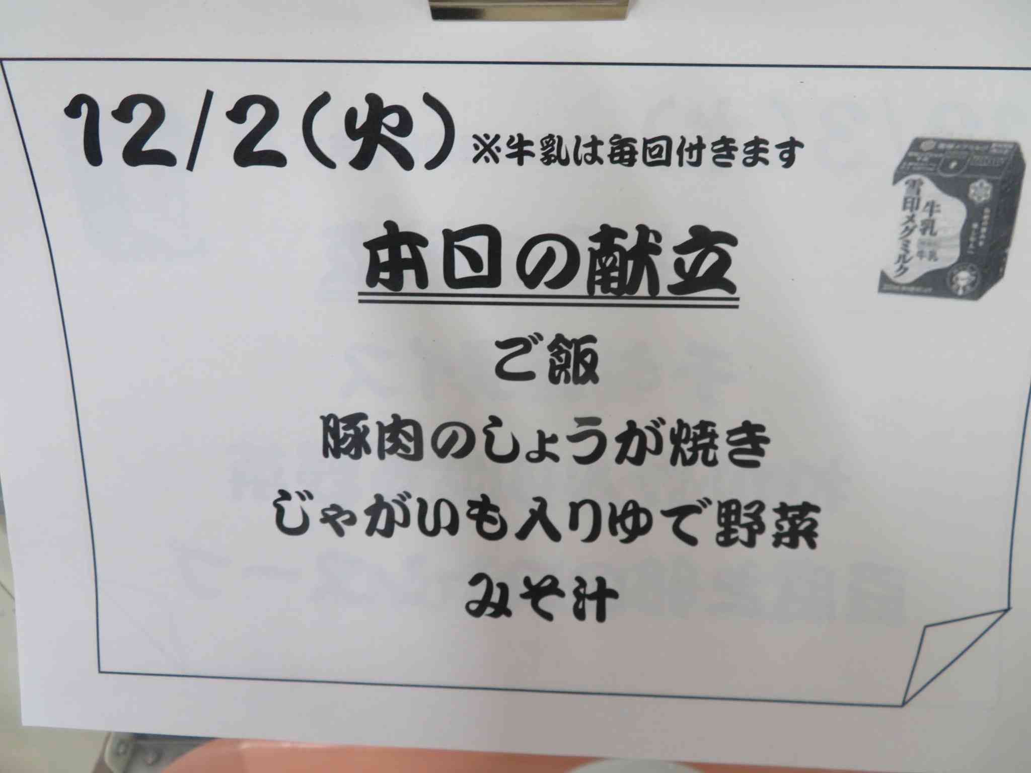 12/2 本日の給食です。