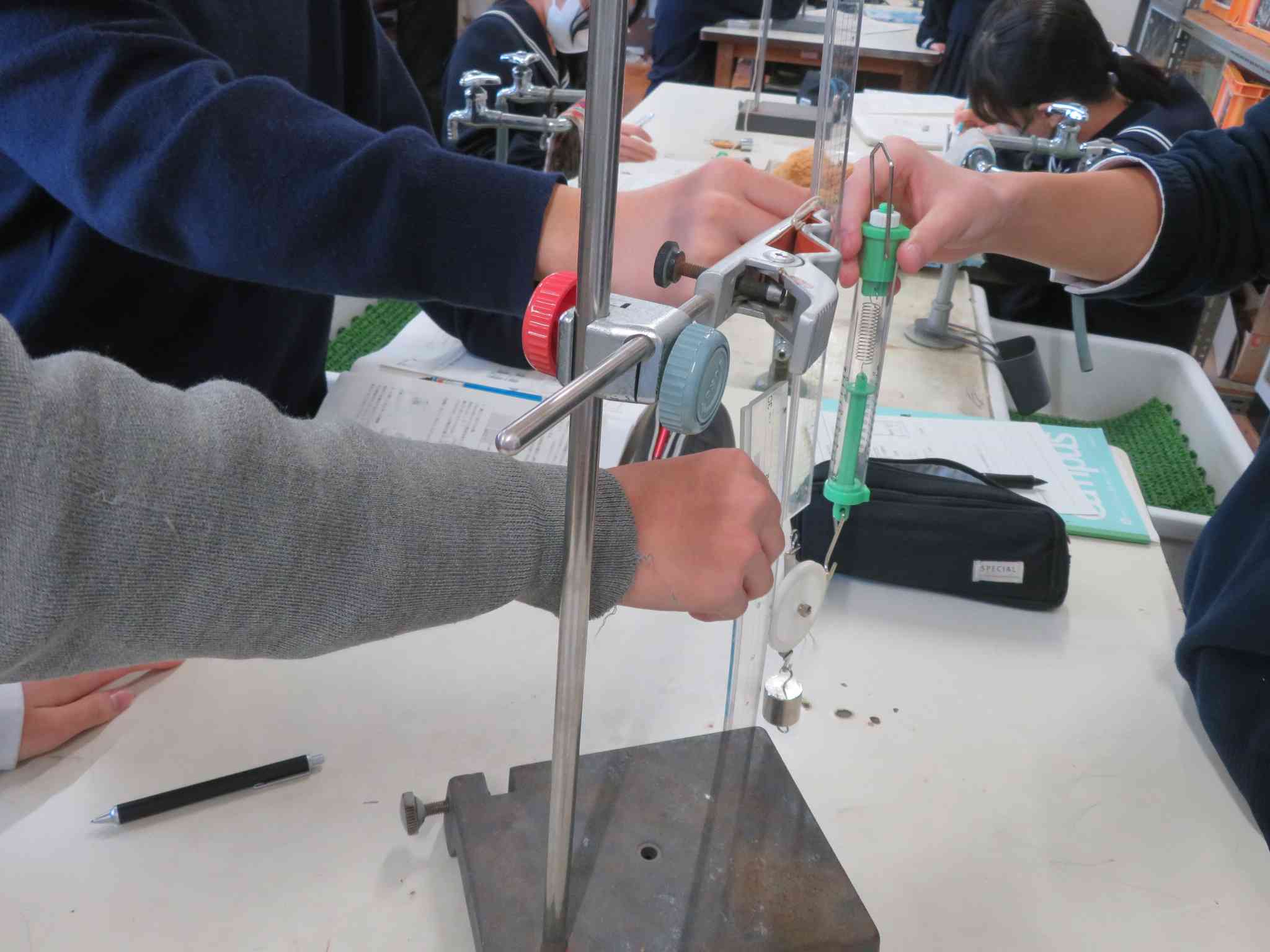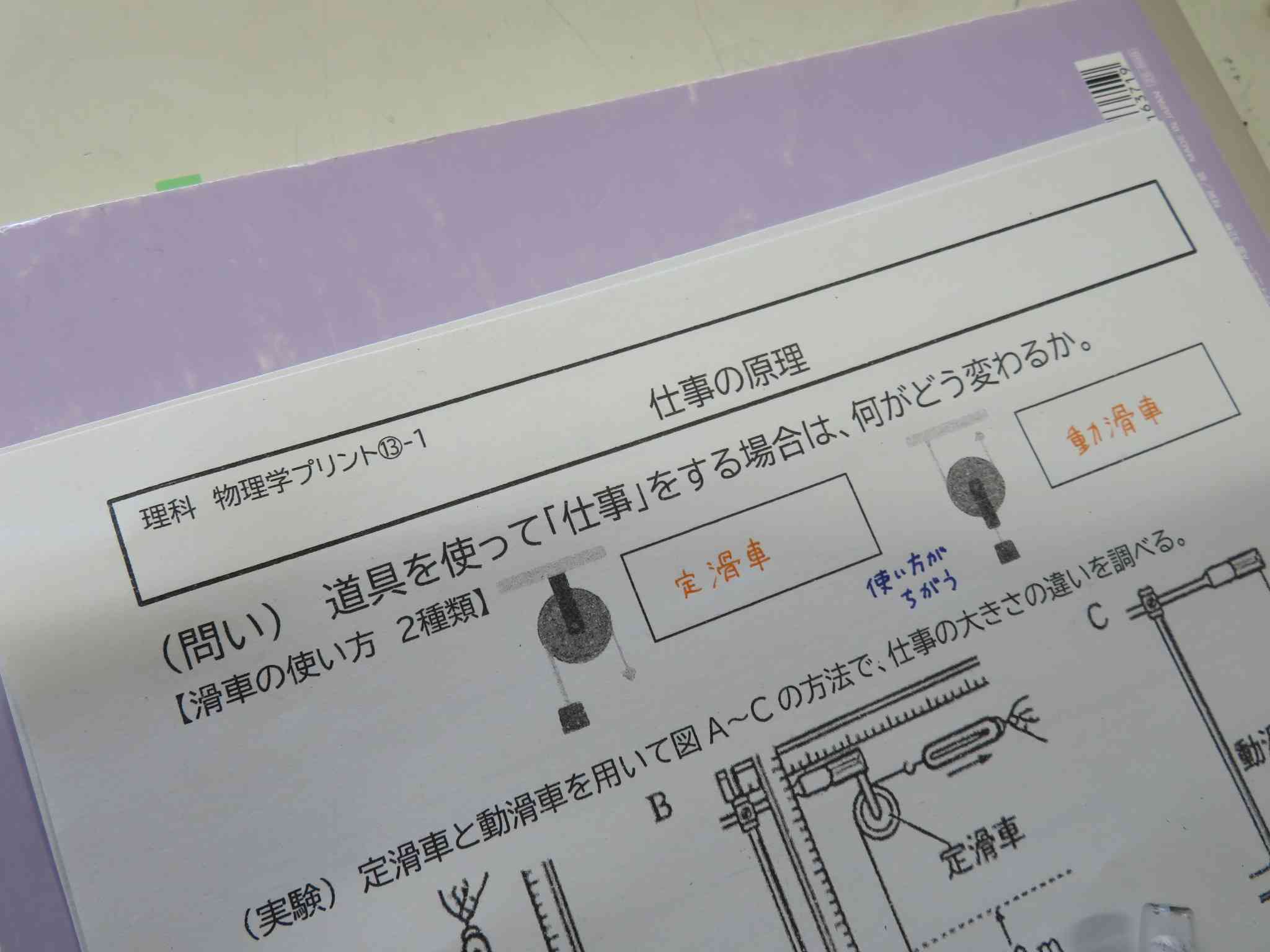 理科では仕事の原理について実験をしながら学習していました。しっかり理解できたようで、「これが定滑車でこれが動滑車です!」と違いを教えてくれました。