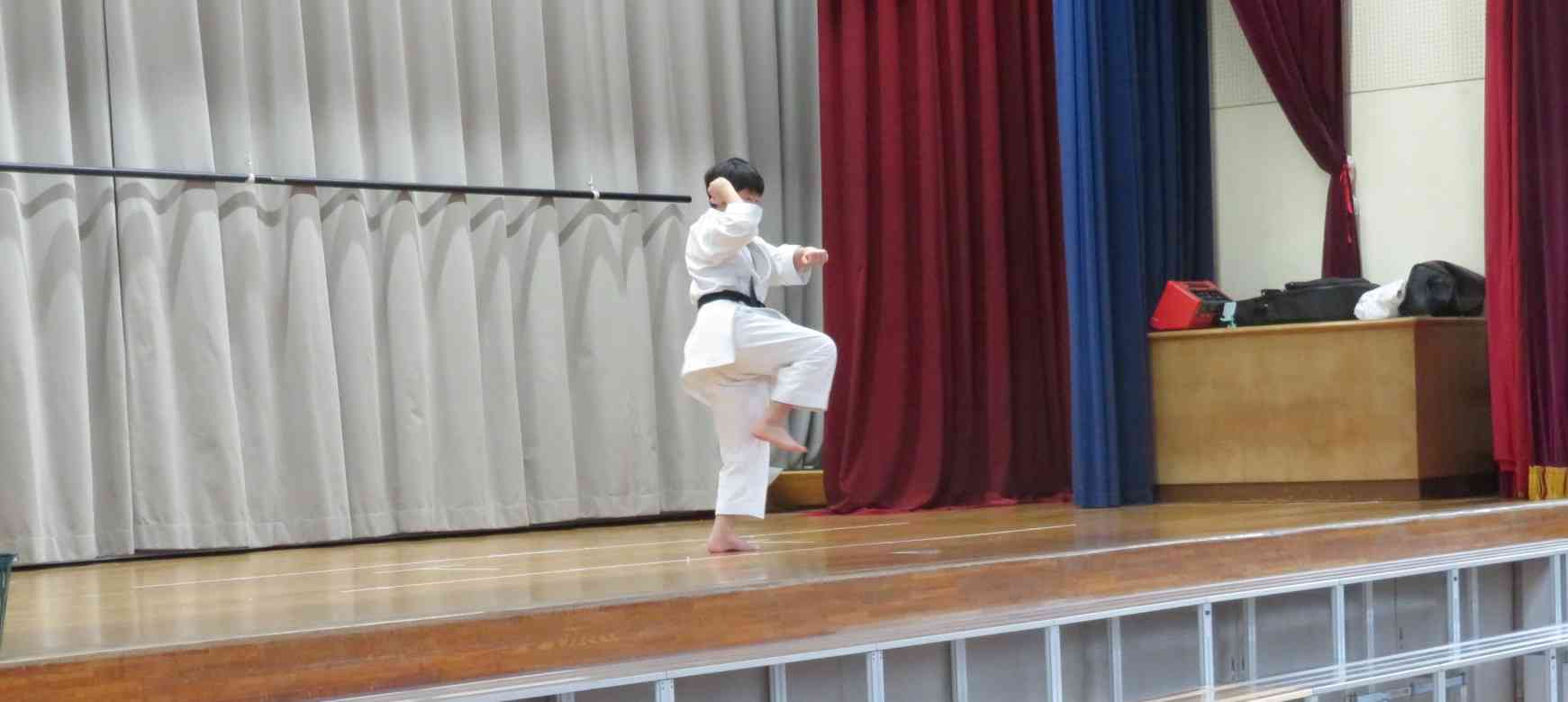 本校、生徒が素晴らしい型の演技・板割りを披露しました。