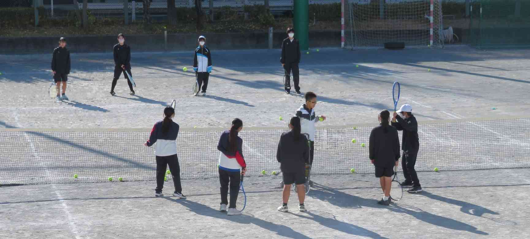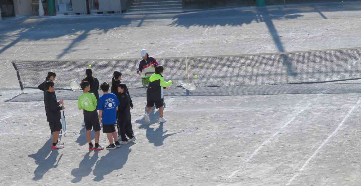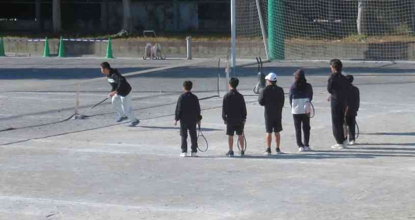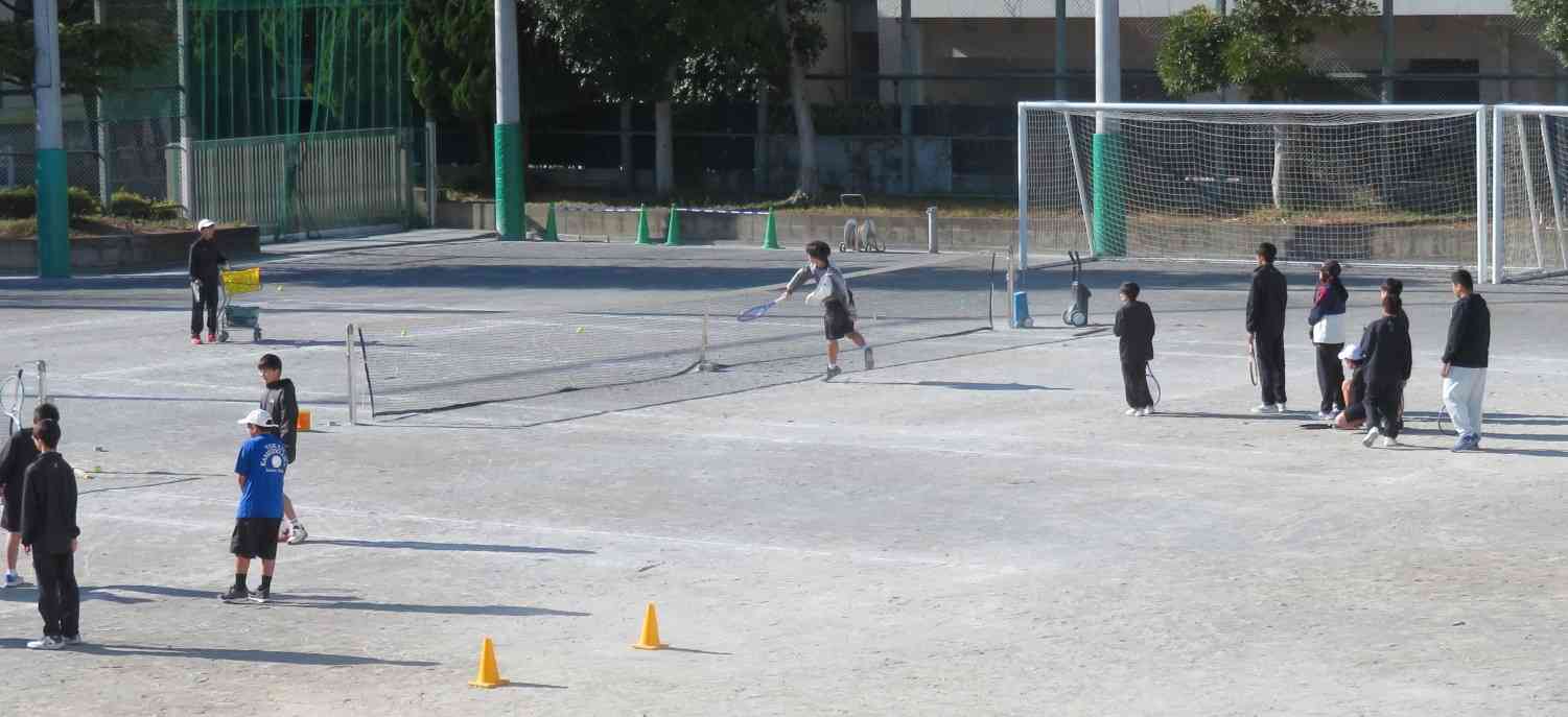 12/6 テニス部練習「顧問の先生も一緒にプレー中です」