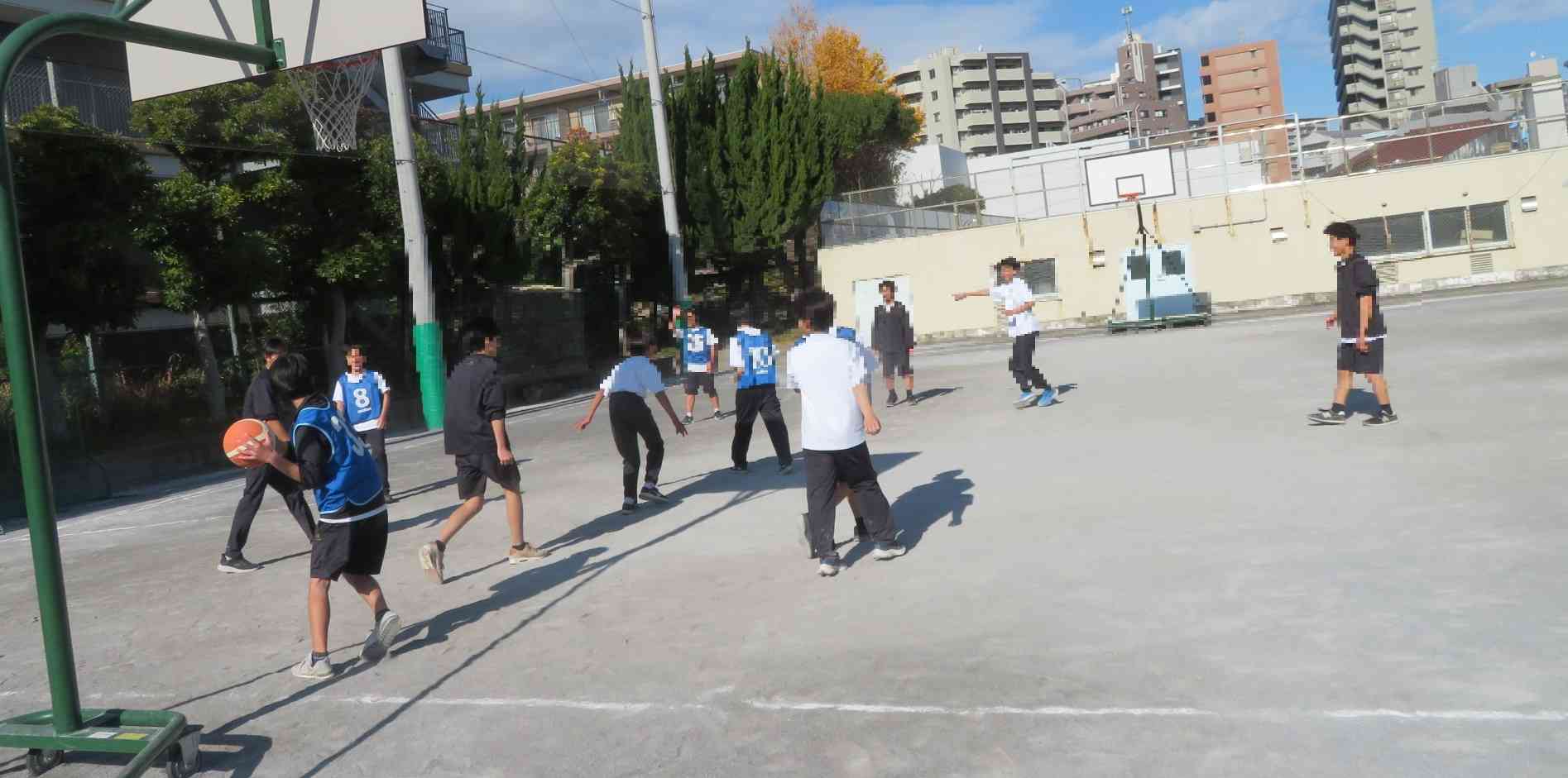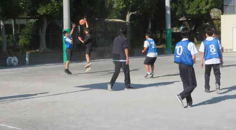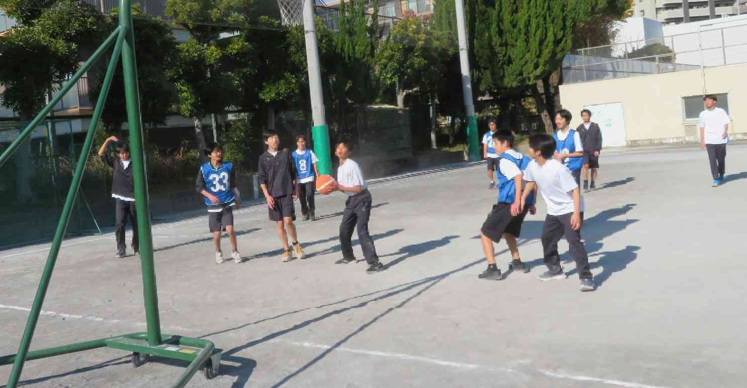 12/9 2年生 保健体育 バスケットボール「チームワークで崩して、ナイスシュートです」