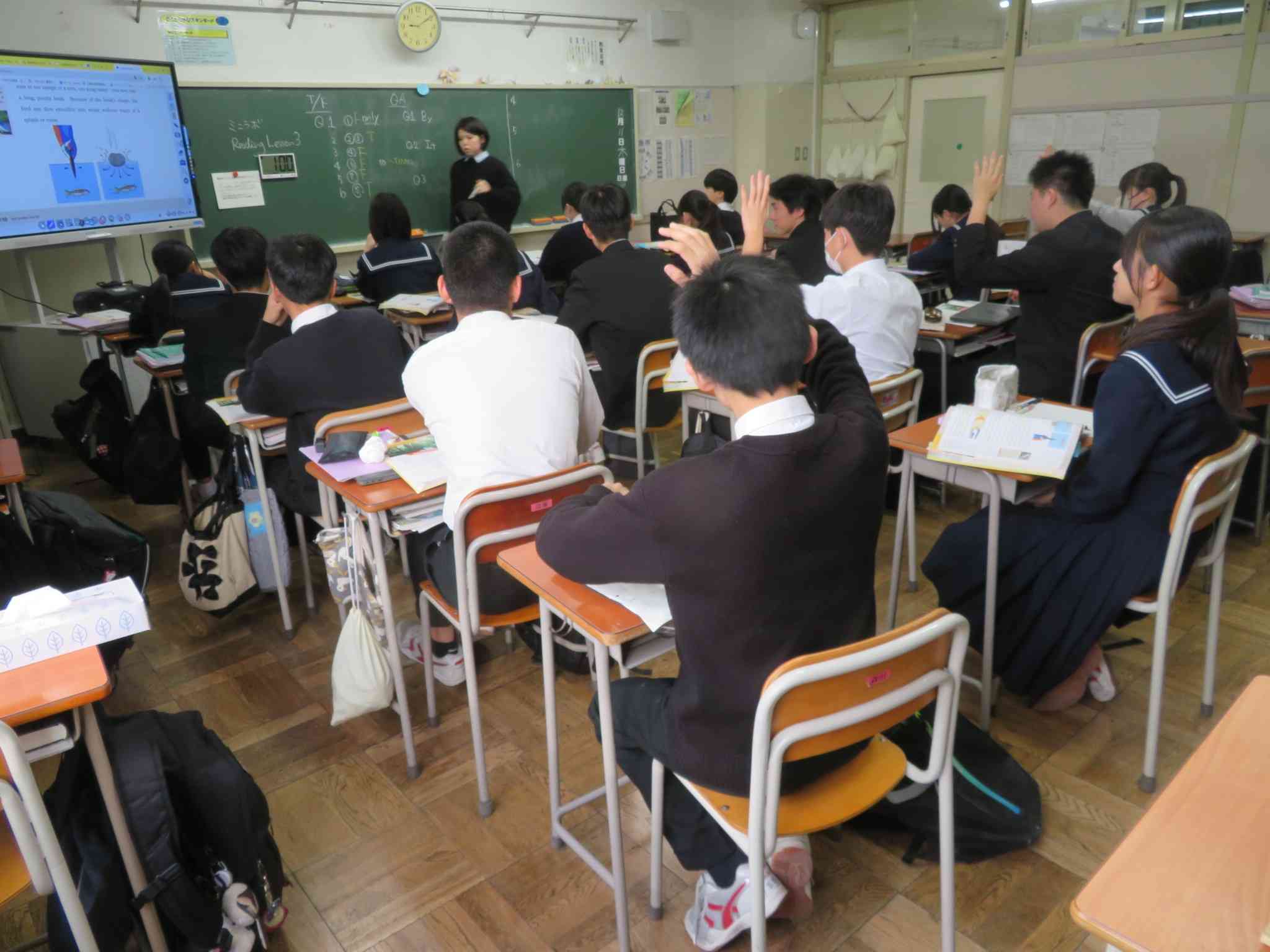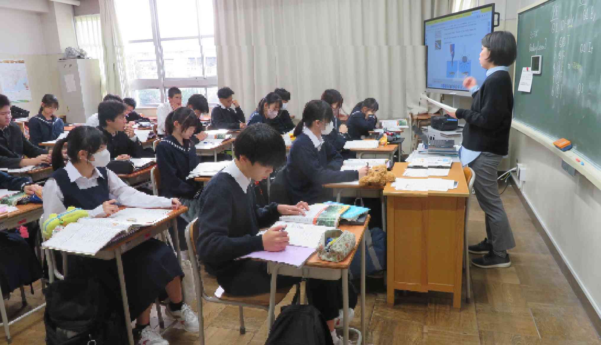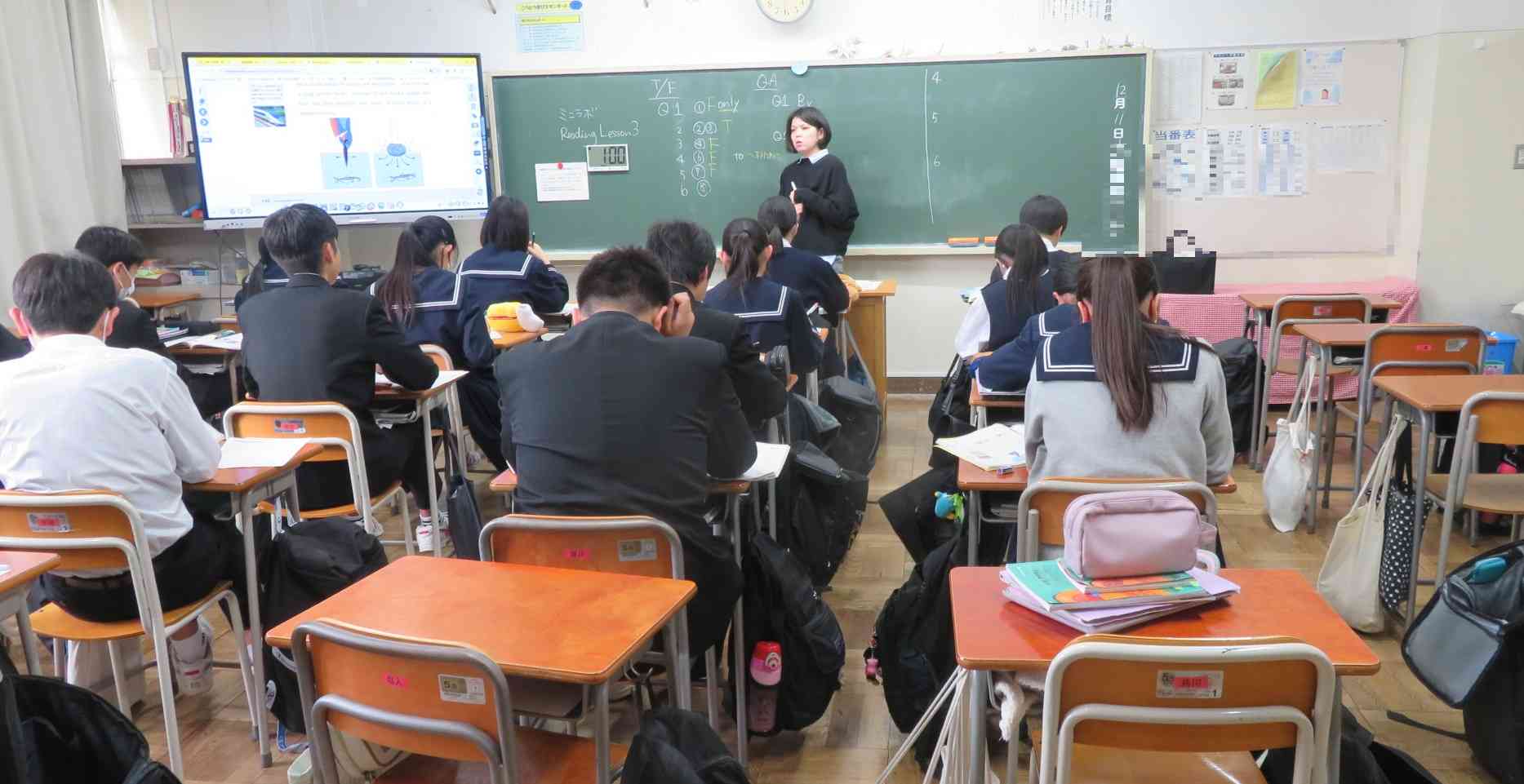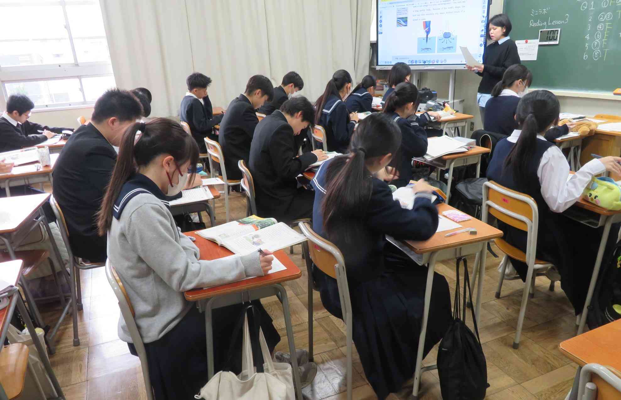 生徒は先生の話す英語に必死に耳を傾けます。