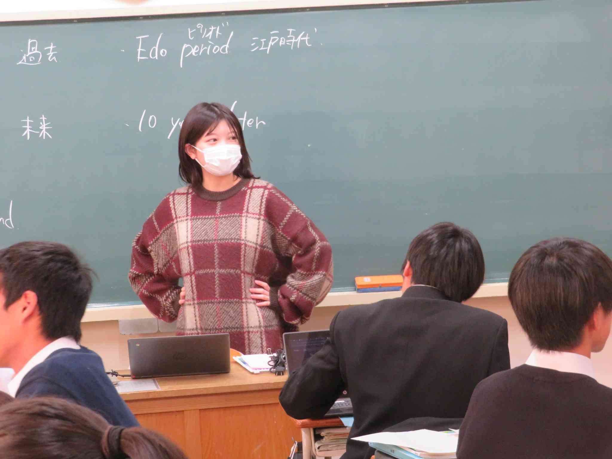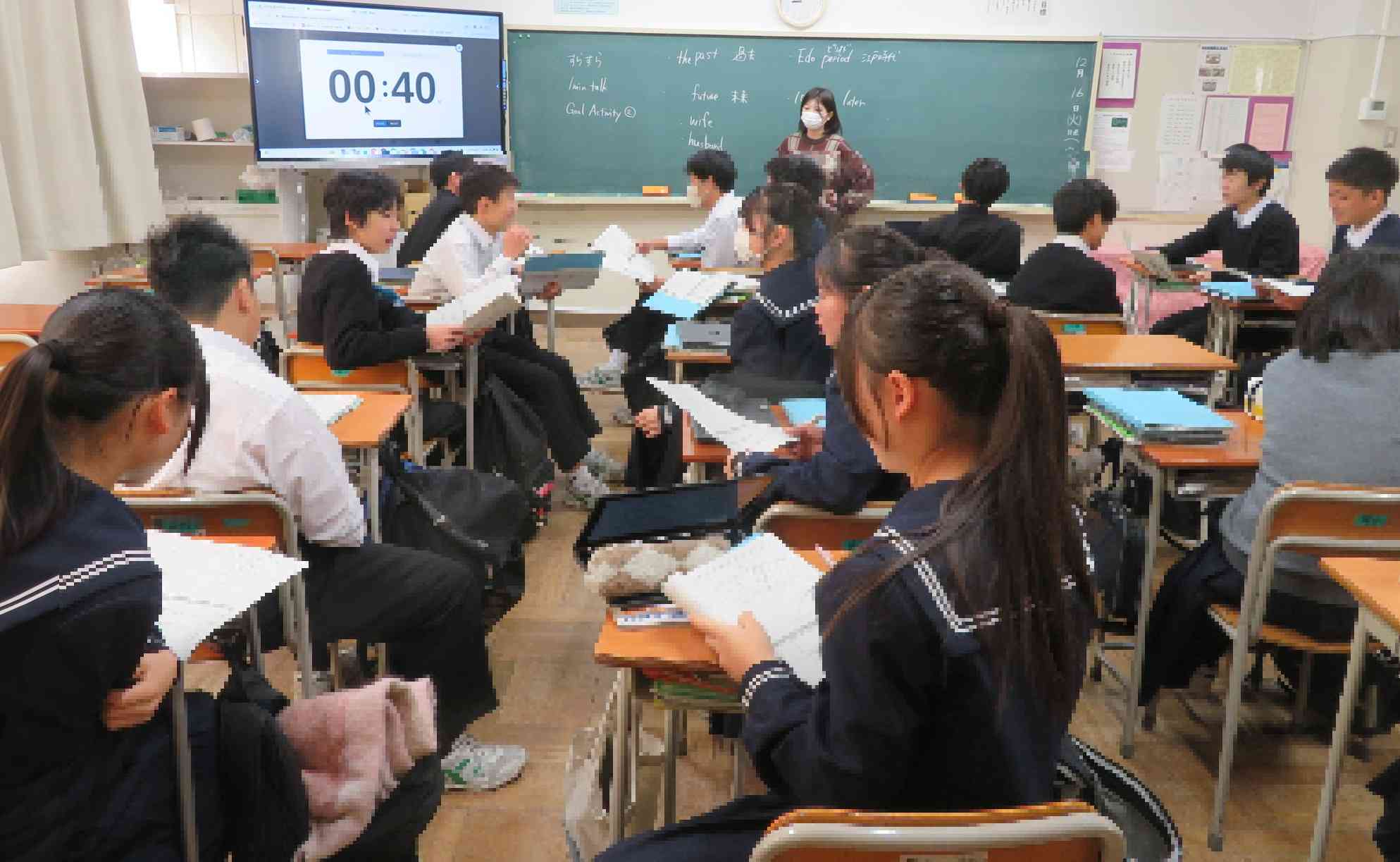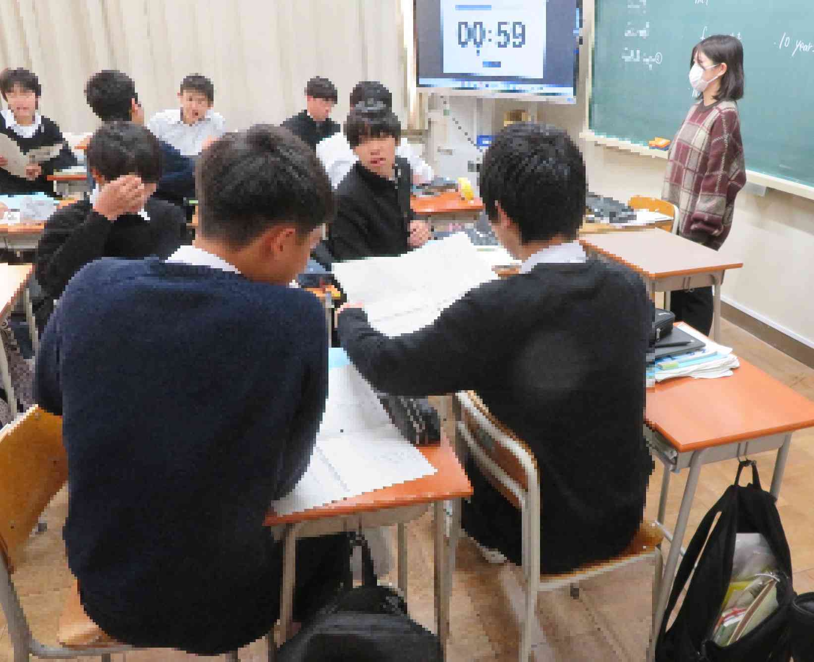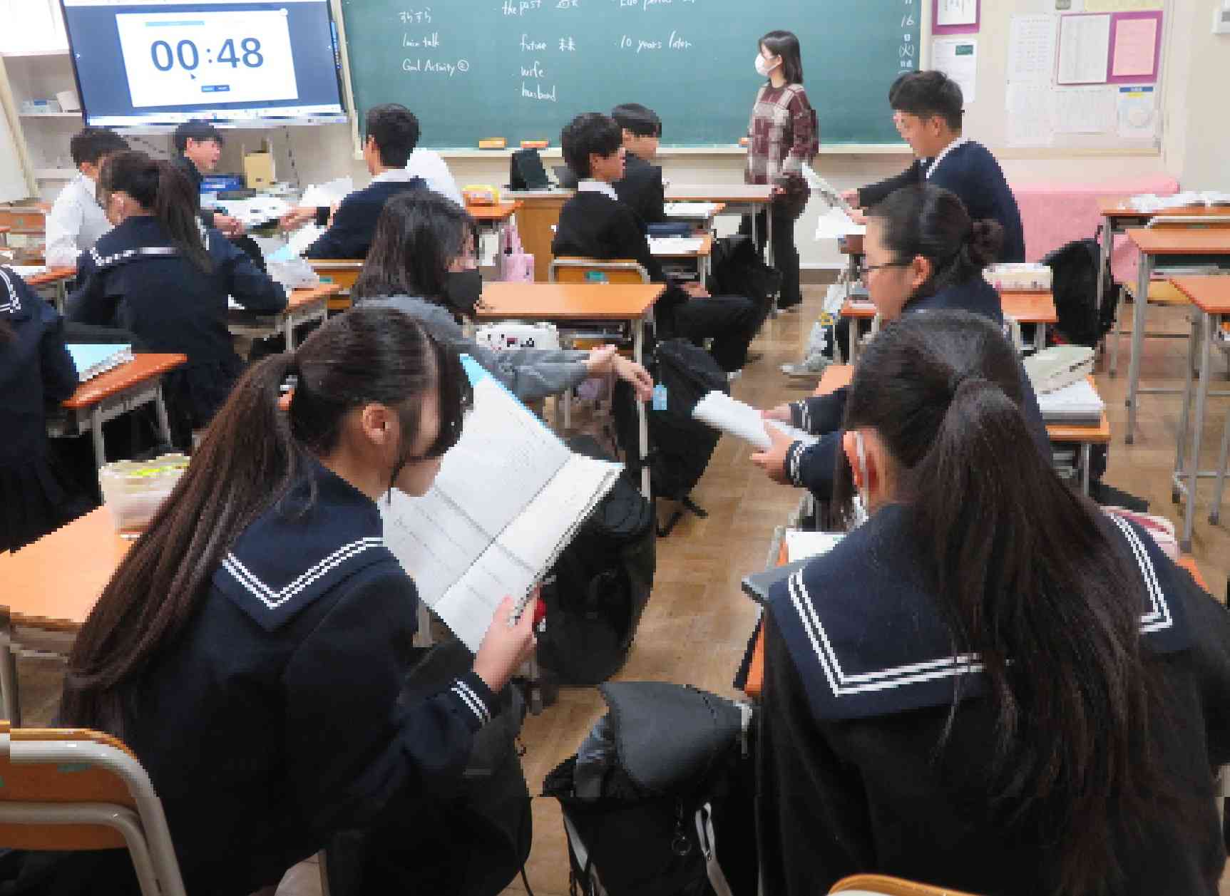ペアの生徒と会話の練習をしています。恥ずかしがらずに大きな声でお互いに会話しています。素晴らしい!