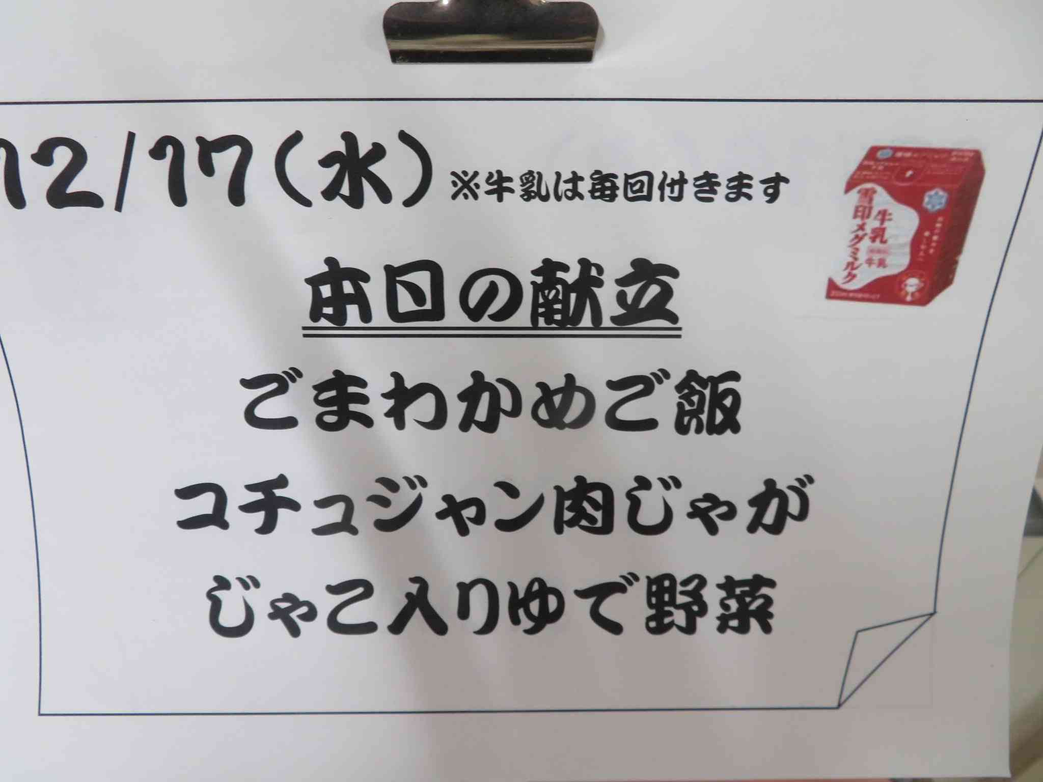 12/17 本日の給食です。