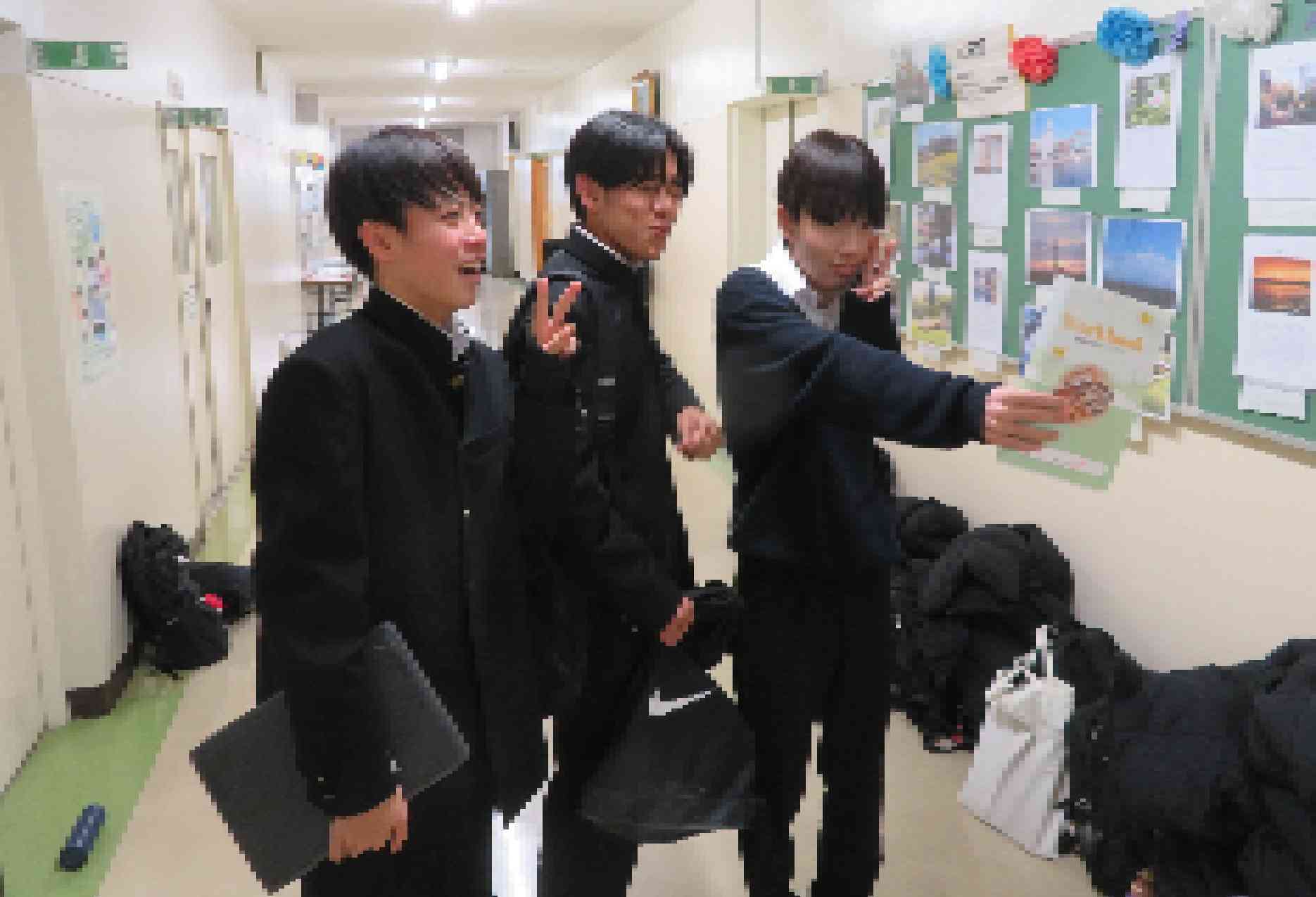 12/23 亀中の放課後の様子「友達と一緒にハイ、ポーズ」
