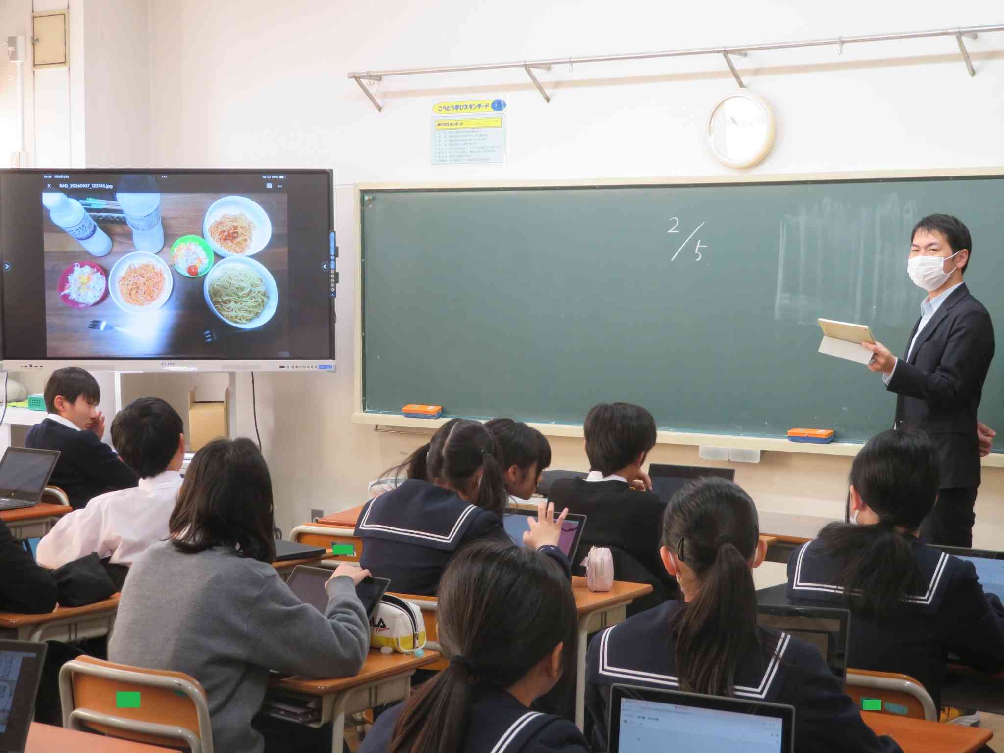 新年明けましておめでとうございます。 冬休みが終わり、元気な生徒の姿が見れてとてもパワーが出ました! サッカーをしたり、百人一首をしたり、地理の学習をしたり、図形について学習したり、みんなの作ったお弁当を見たり、様々な学びから知識や考え方を深めている様子でした。2年生も残りわずか…。一つ一つの学びを大切にしていきましょう!!