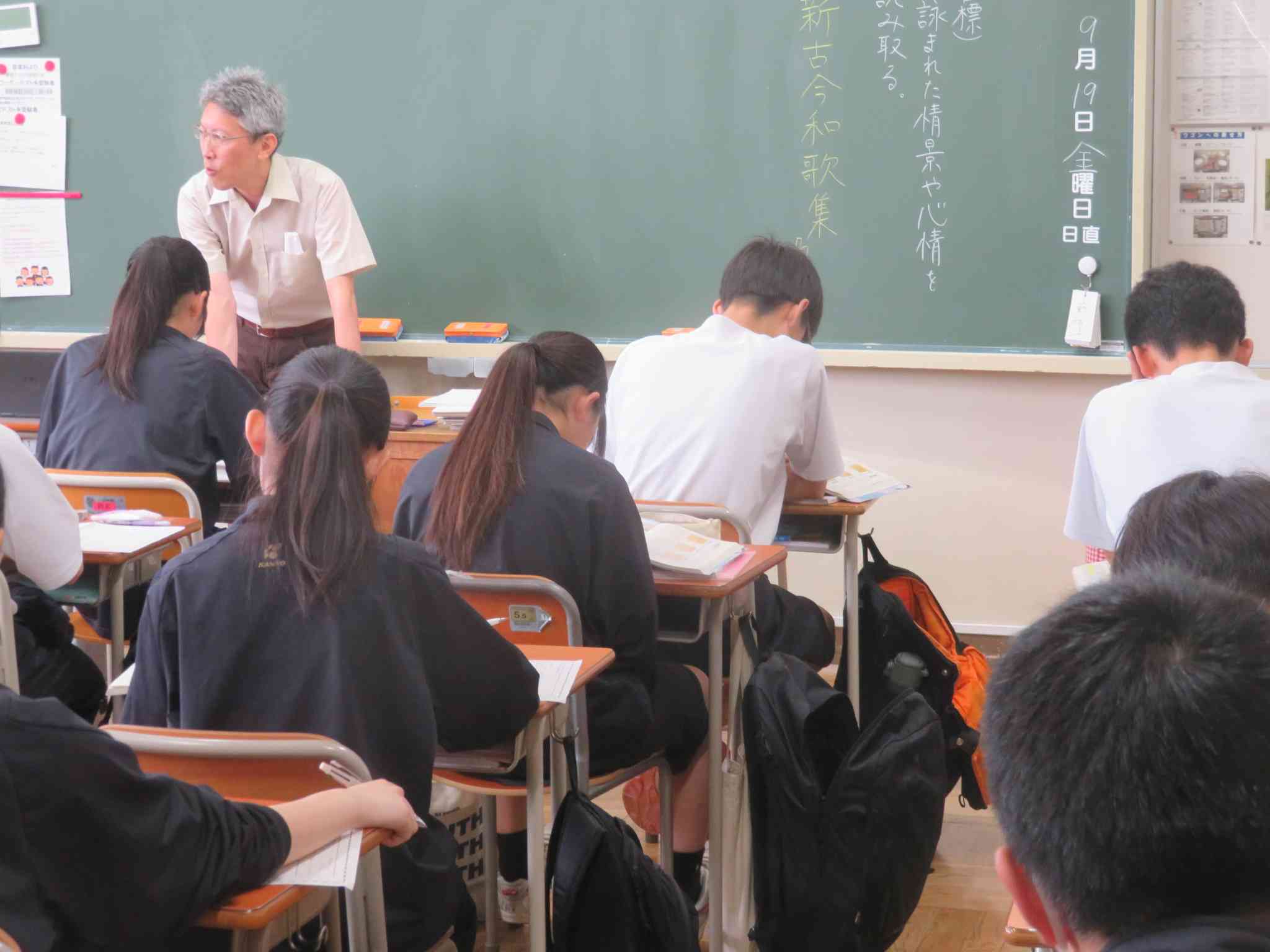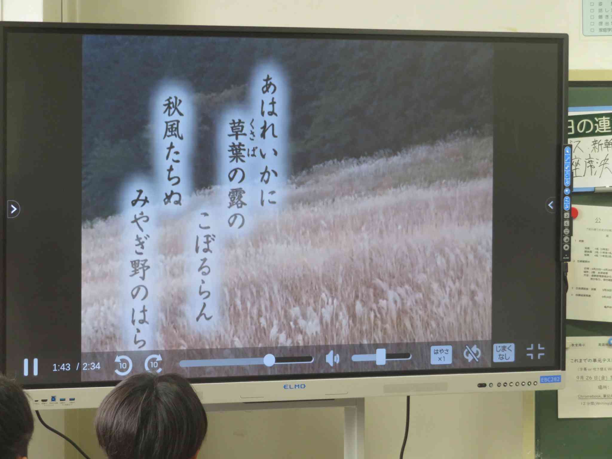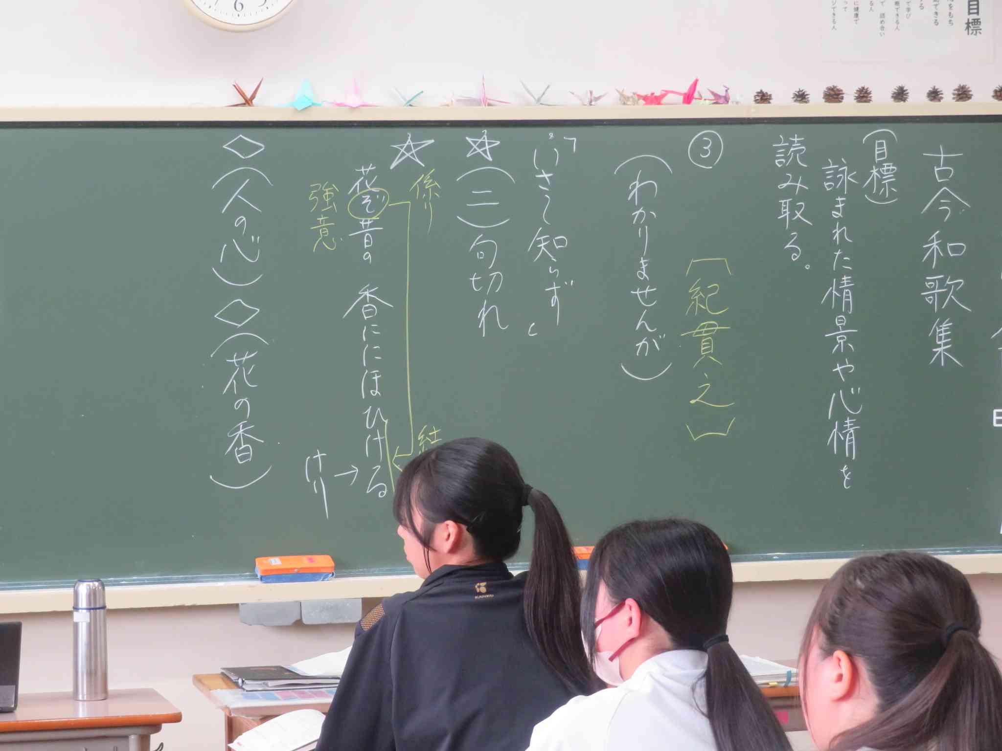 古今和歌集について、理解を深めるため、教員による板書に加え、資料動画を活用して授業を行っています。