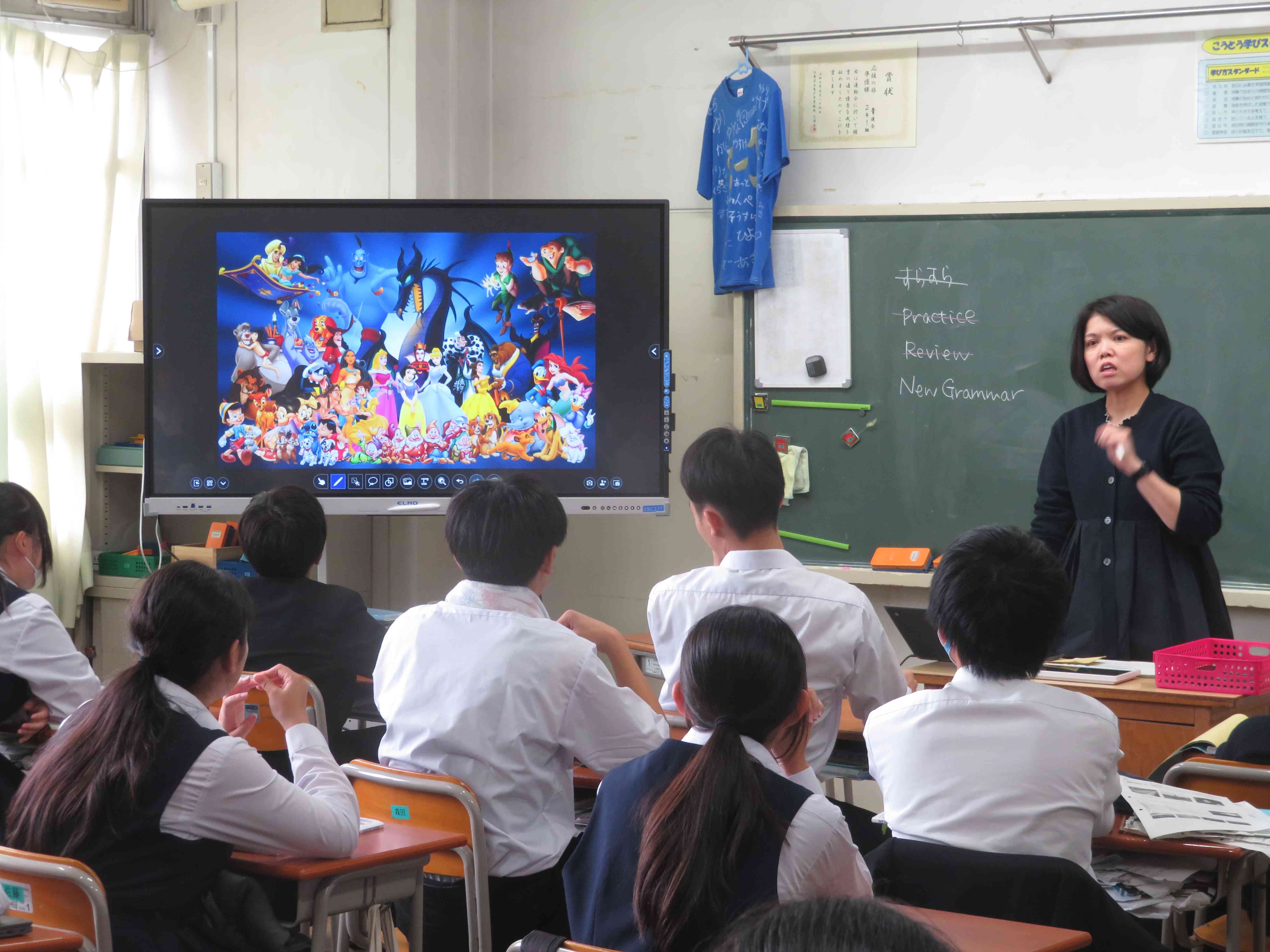 10/23 2年生 英語の授業です。「ディズニーのキャラクター登場」