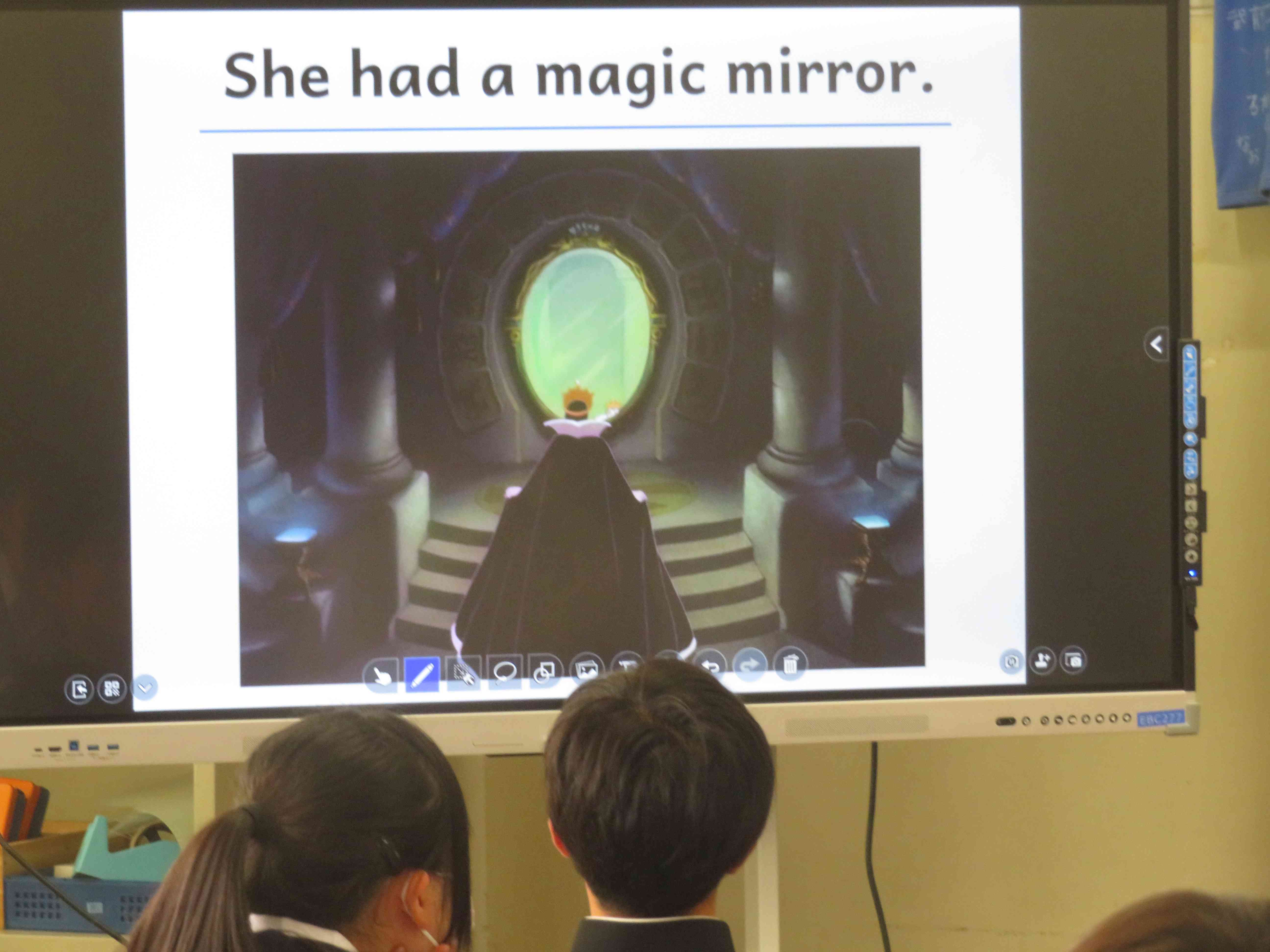 ディズニーのキャラクターが登場しました。生徒達は楽しんで英語を学んでいます。