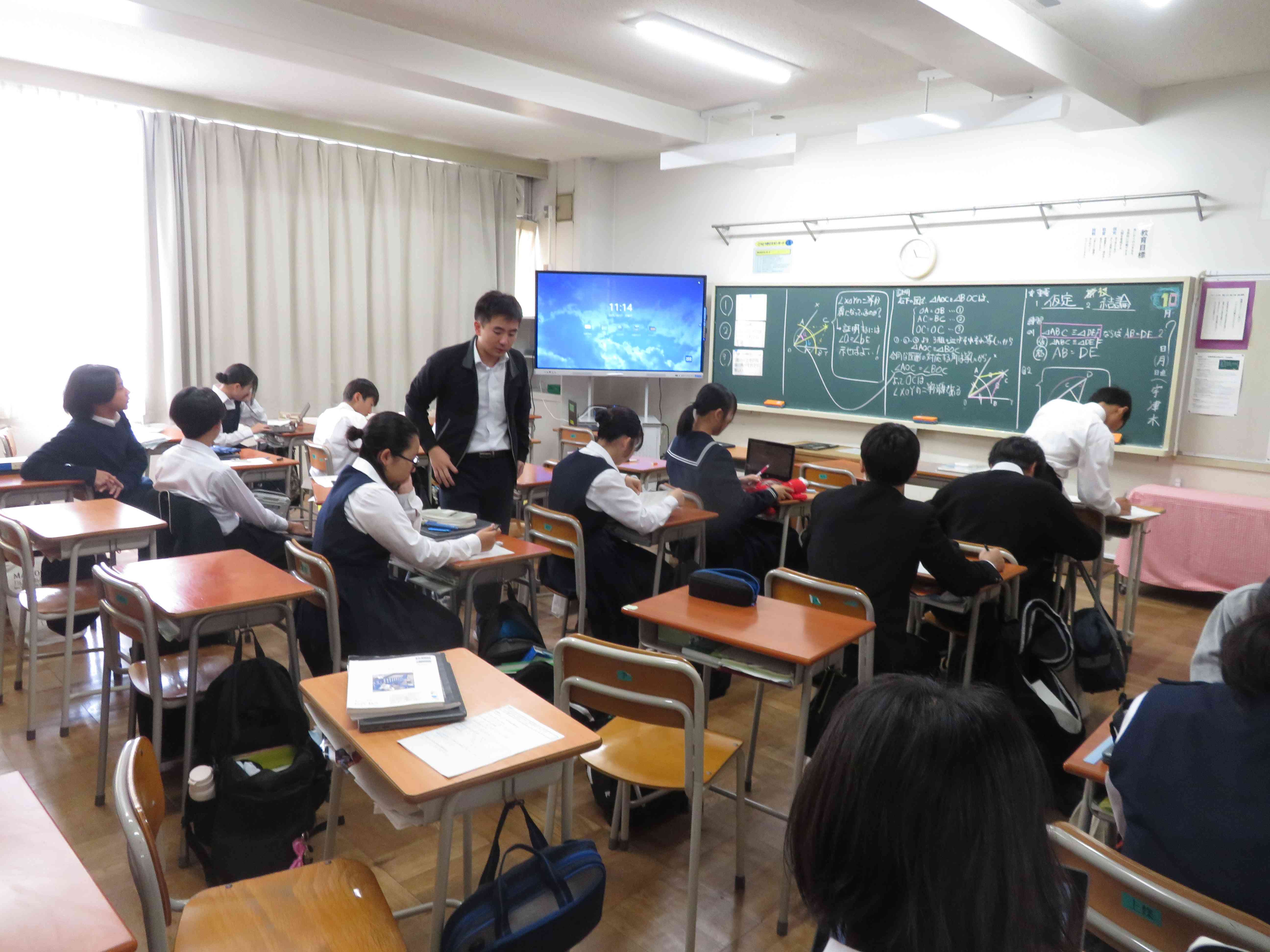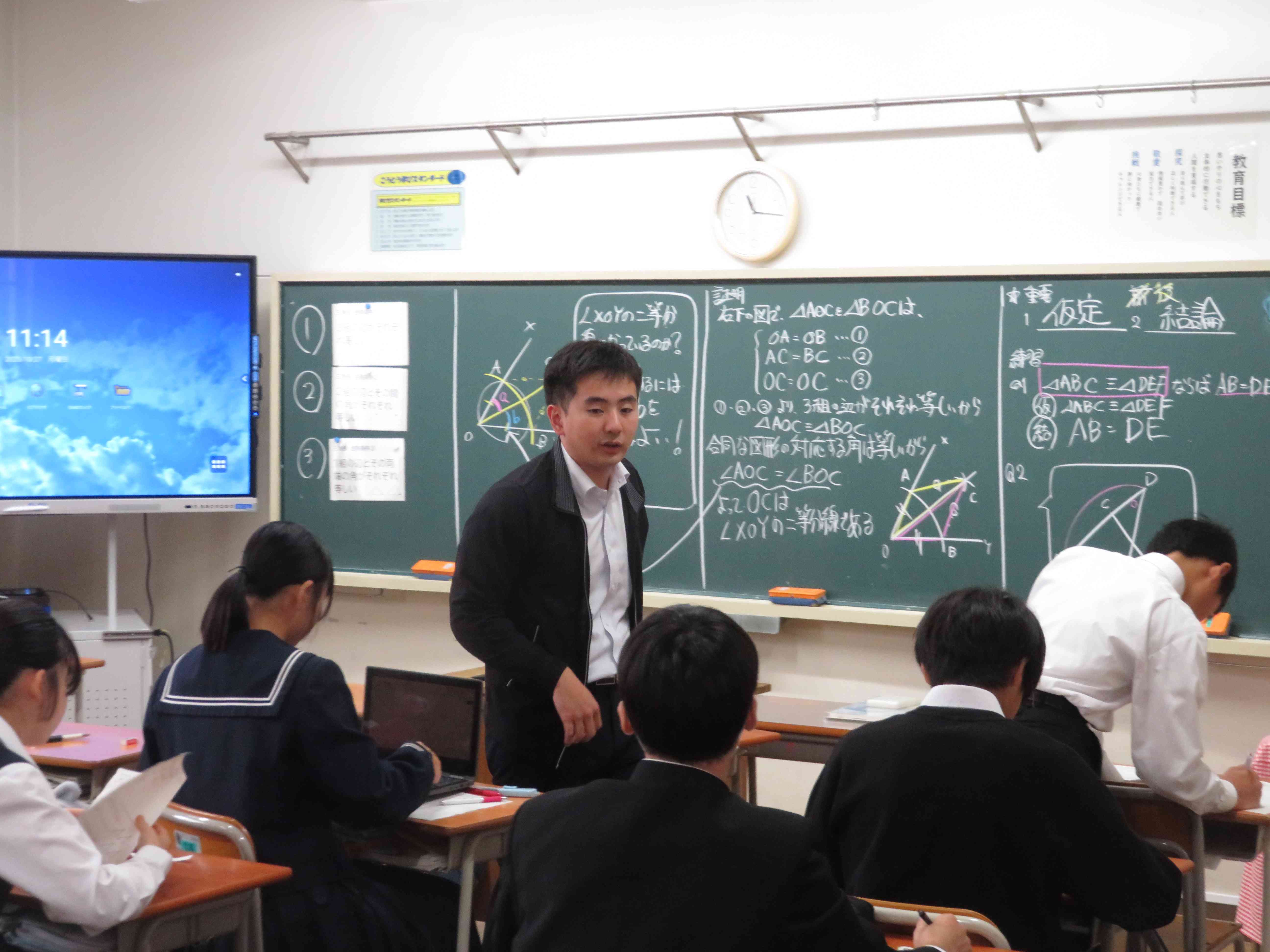 主体的に学ぶ生徒達の様子です。先生が個別に教えています。