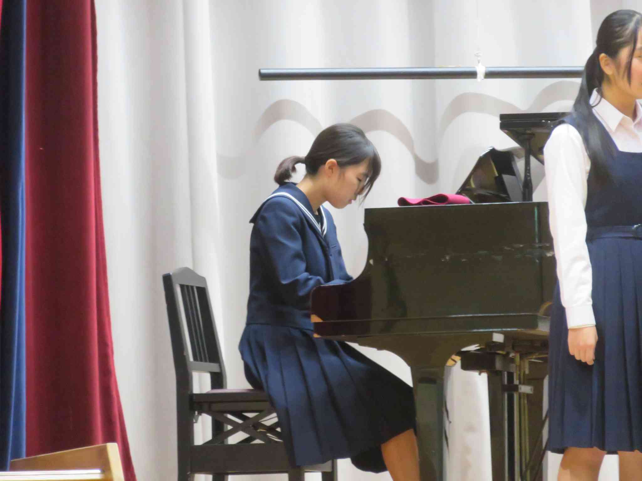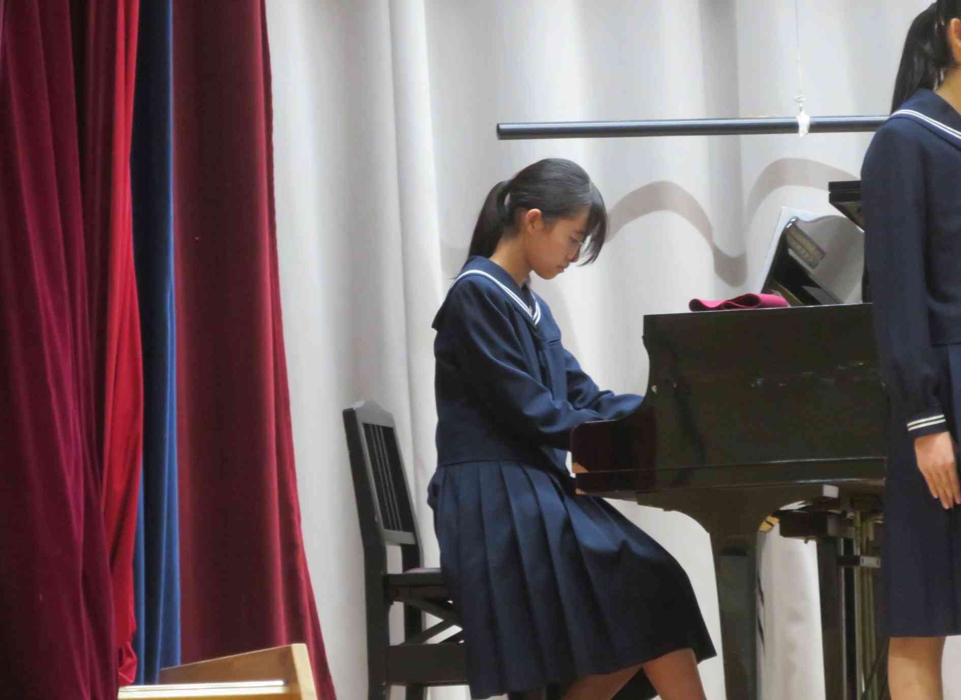 合唱コンクールも明日に迫り、昨日最後の学年練習を行いました。いつもの学年練習では課題曲のみの歌唱でしたが、今回は自由曲も全クラスの前で歌唱しました。練習を積み重ね、今ではどこが金賞を獲るのか分からないほど上達しています。悔いの残らないように、体調に気をつけて本番に臨みましょう! ※画像は各クラスの自由曲の伴奏者です。