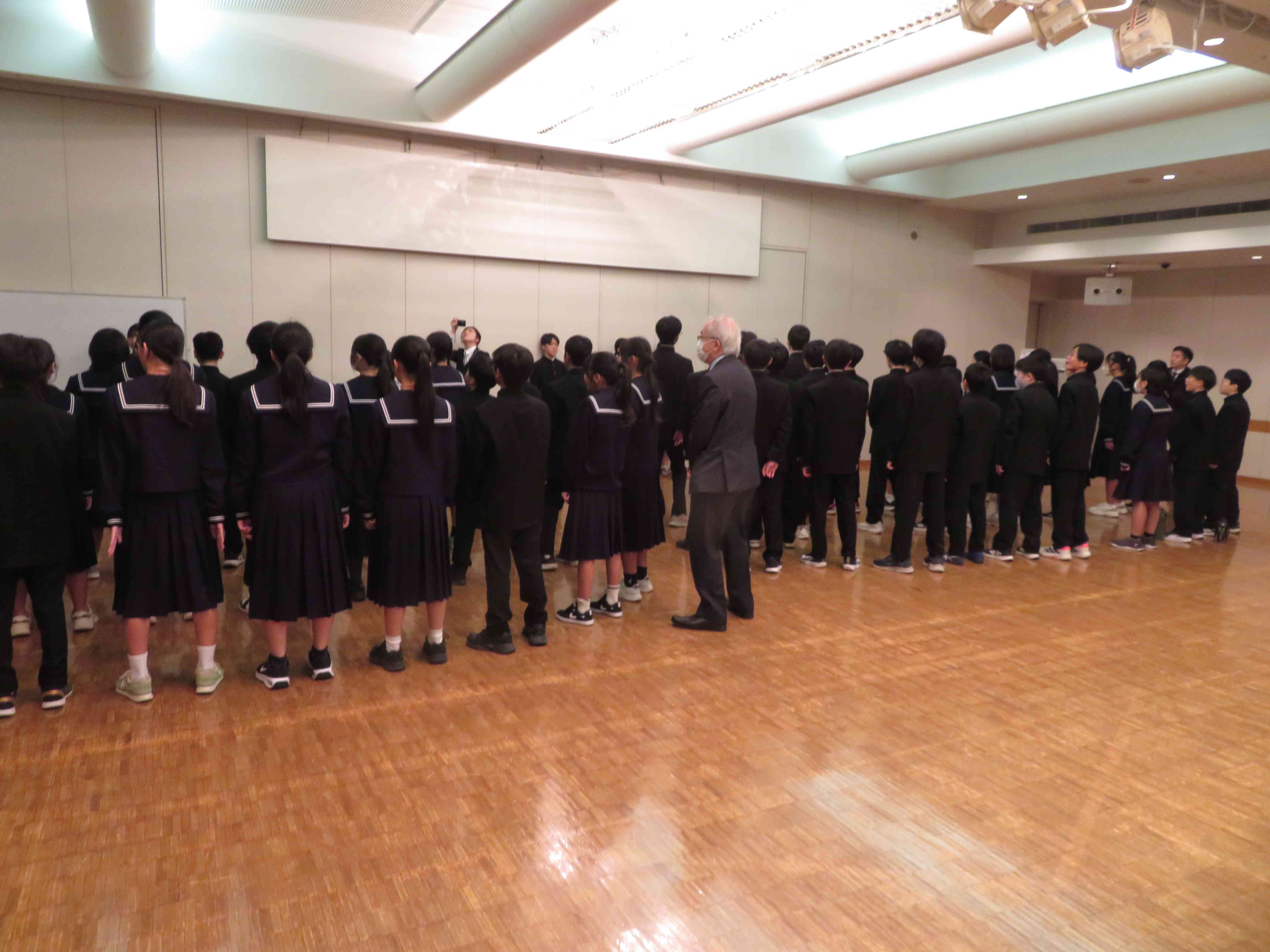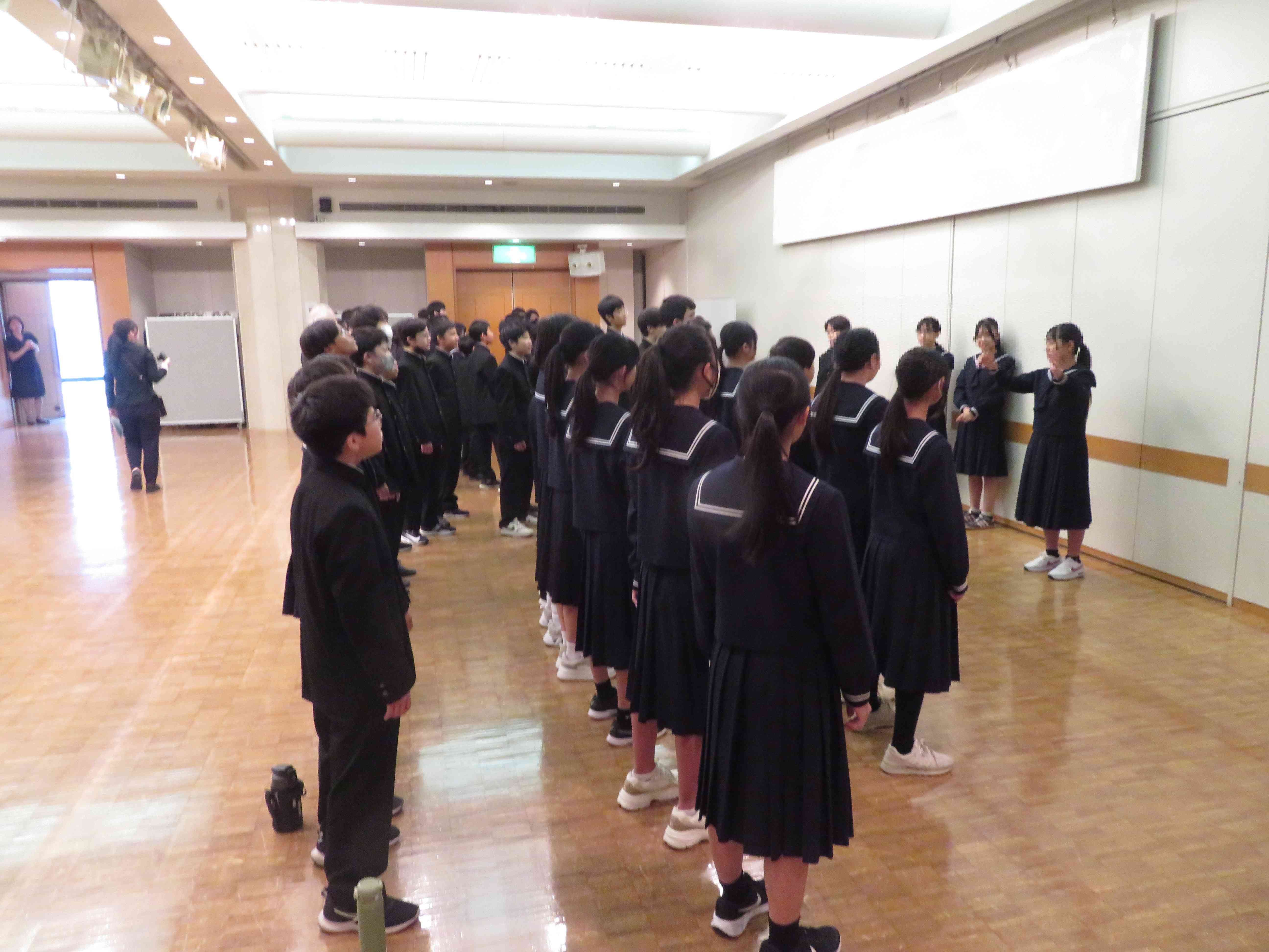 先生方集合打ち合わせ後、生徒入場・事前練習の様子です。