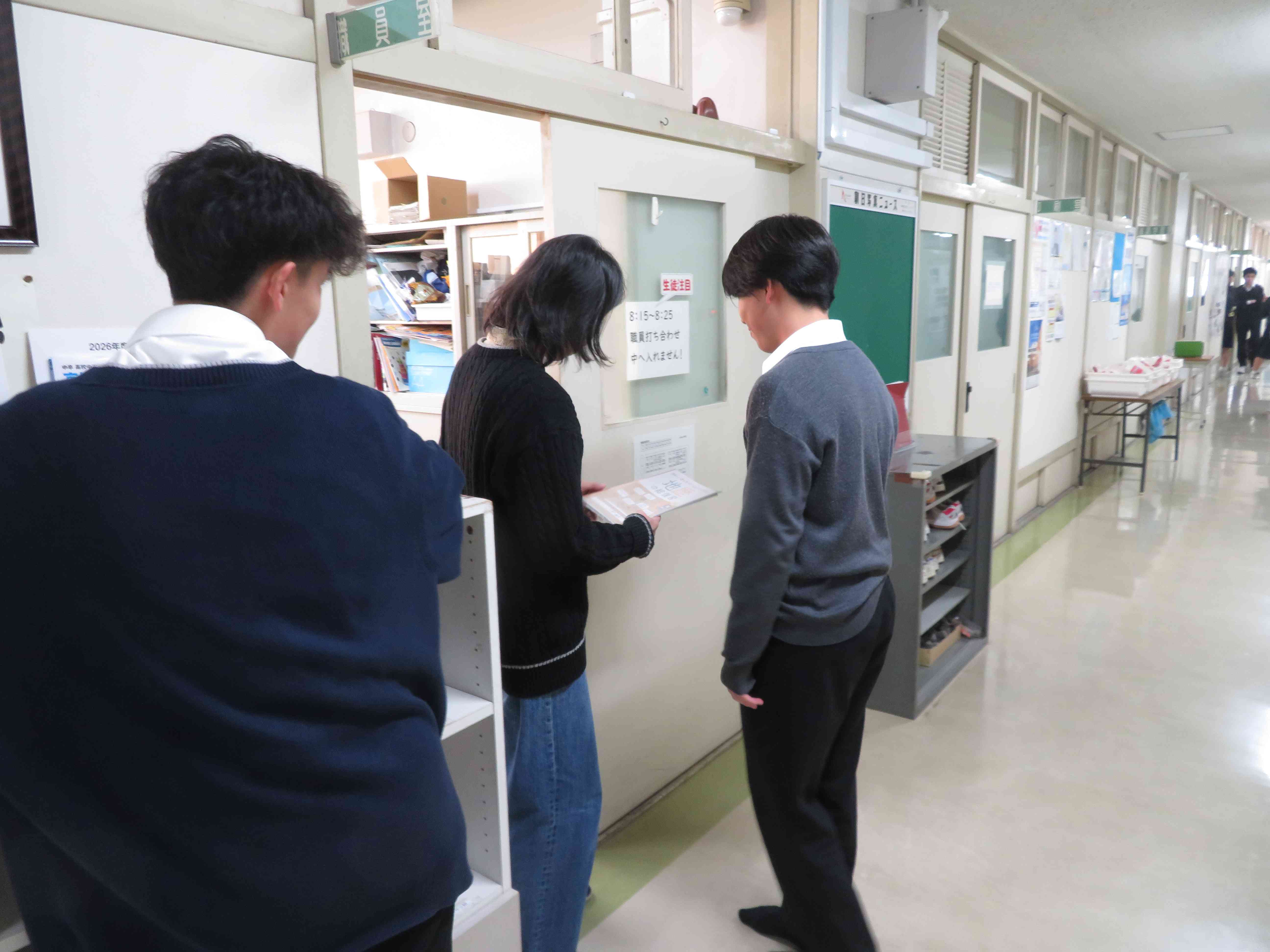 現在、定期考査のテスト期間中です。明日も大切なテストがあります。みんな、頑張って!ね。