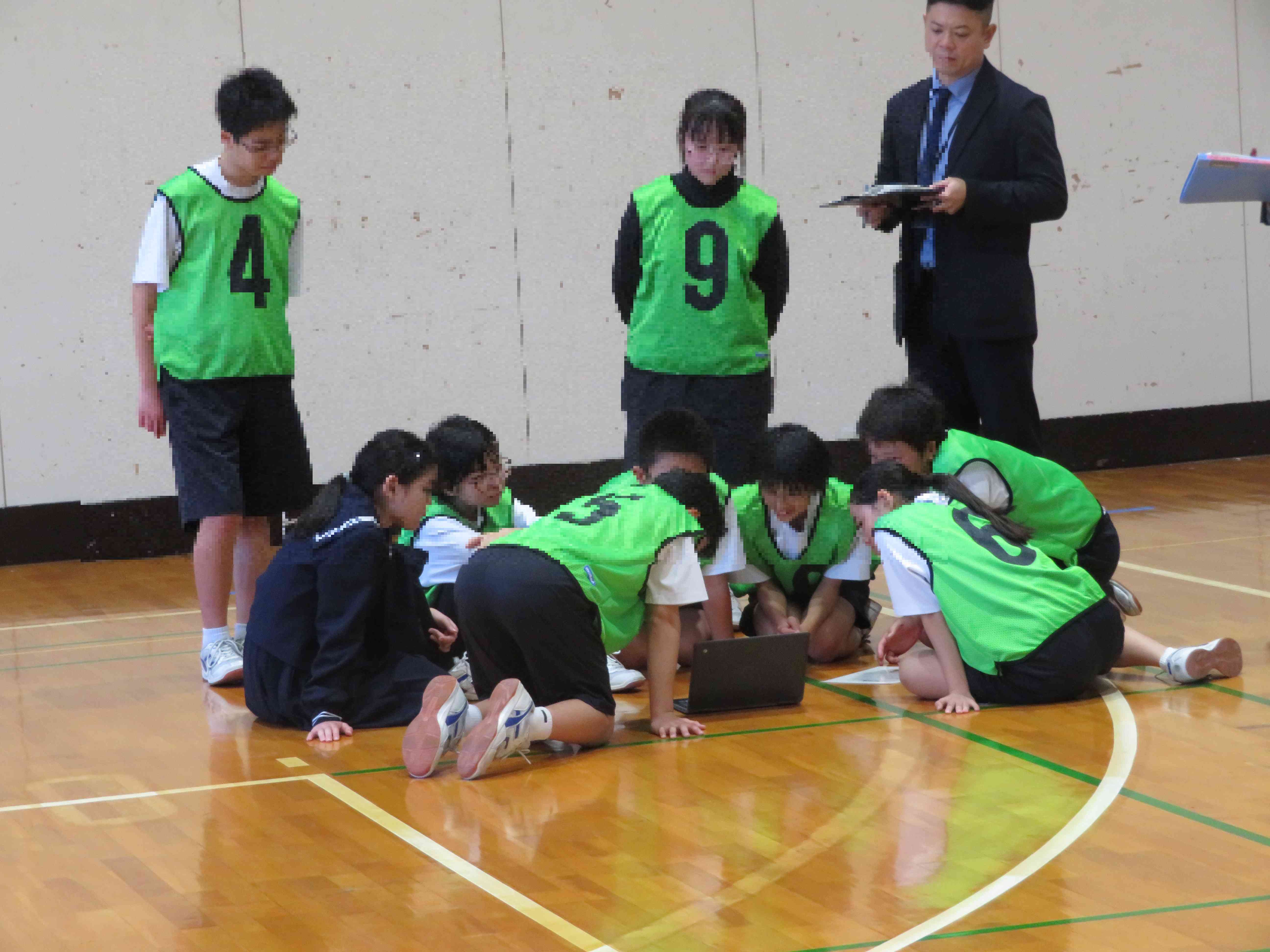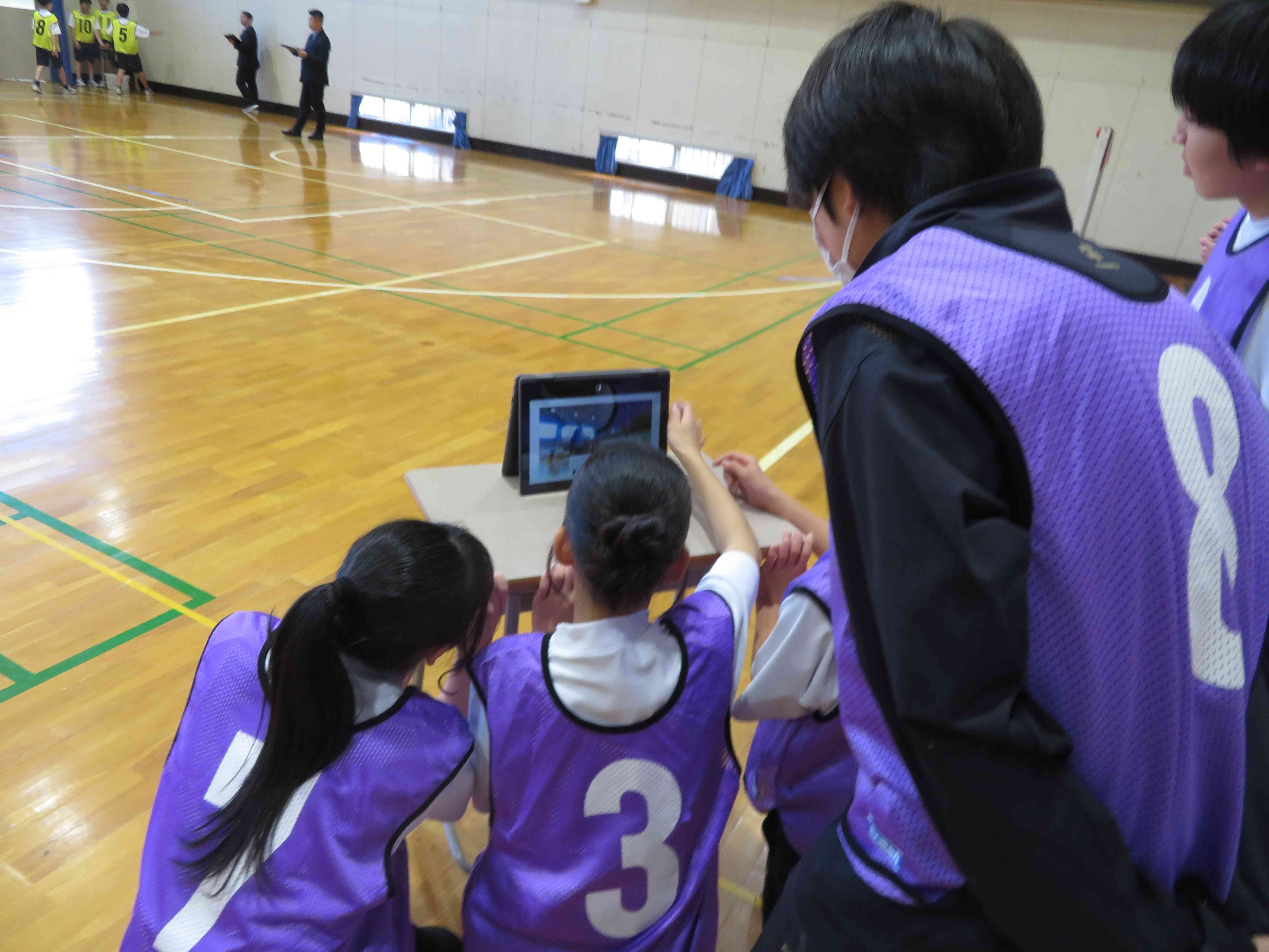 東京都教育庁指導課の先生方が来校され、本校1年生バスケットボールのICTを活用した研究授業を視察されました。 生徒達はいつも通り伸び伸びプレーしました。指導課の先生方から「全員が支えあって取り組んでいるところが素晴らしい。」とお褒めの言葉をいただきました。