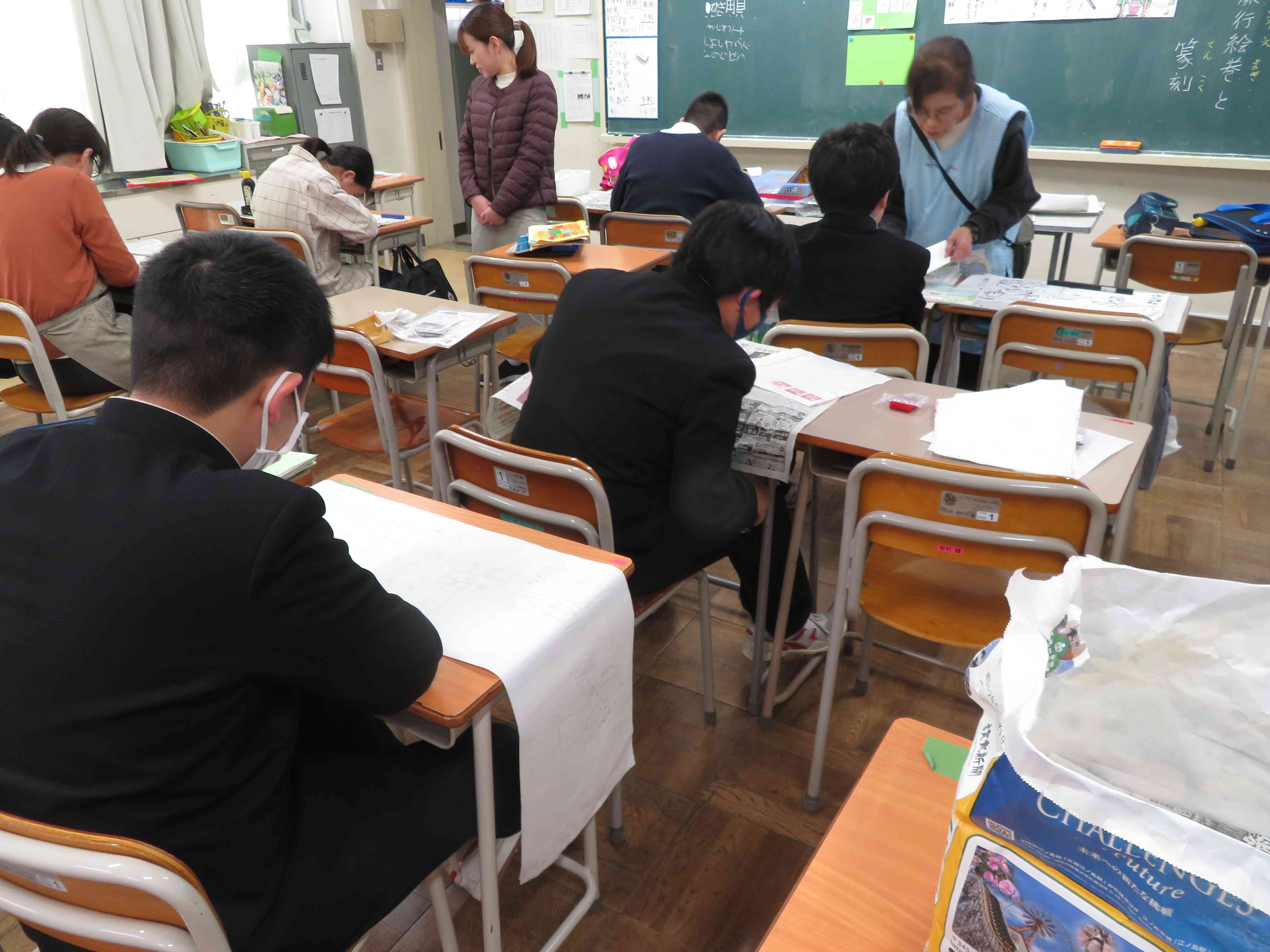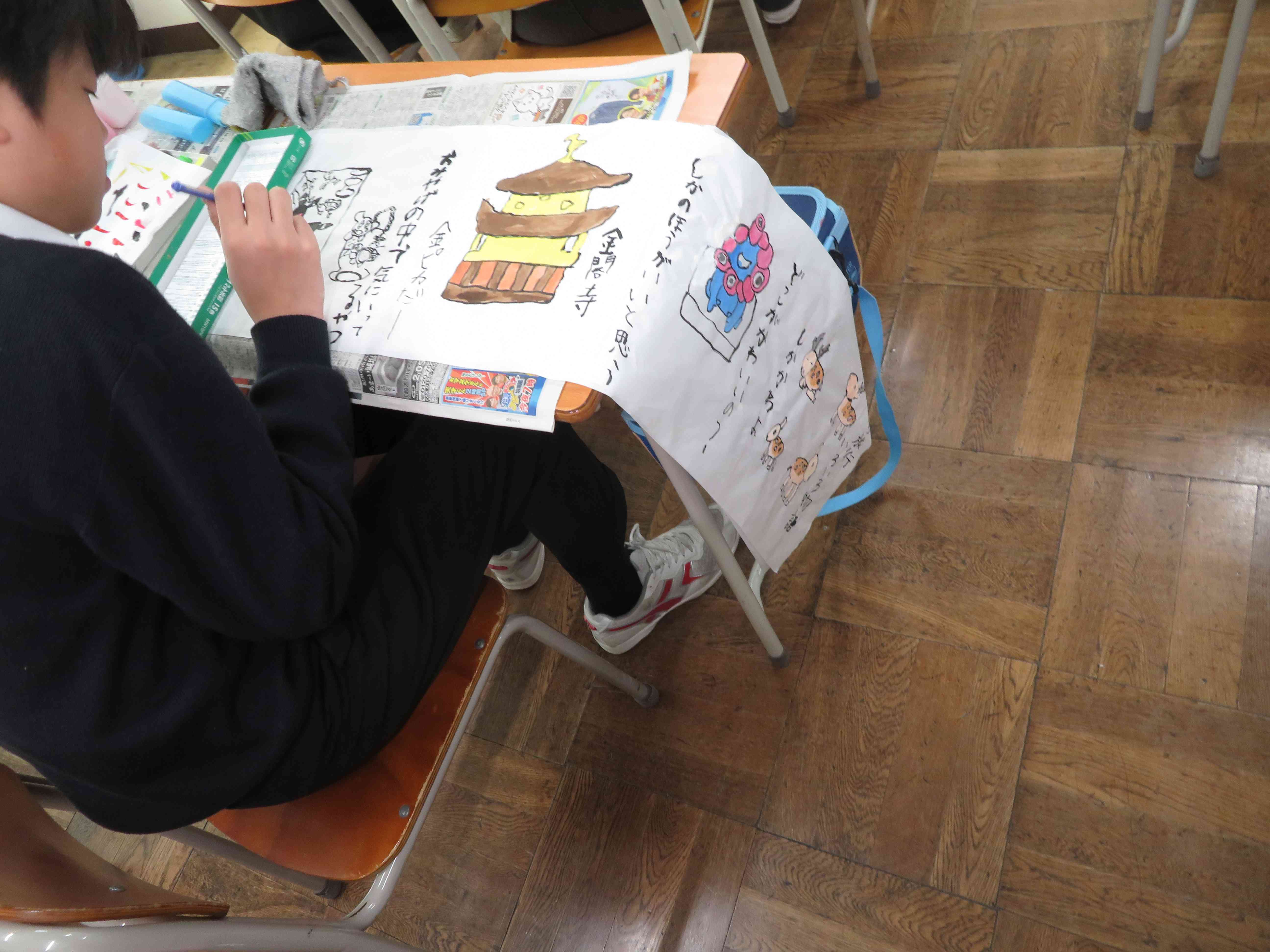 11/18 6組美術 「修学旅行絵巻を制作中」