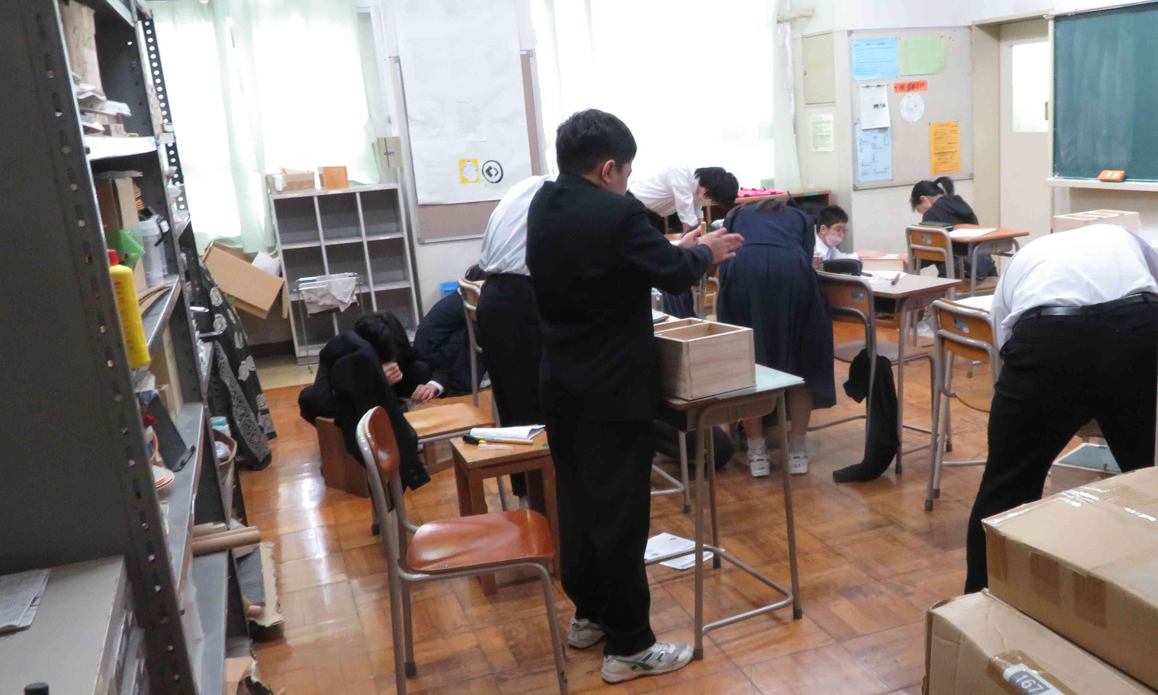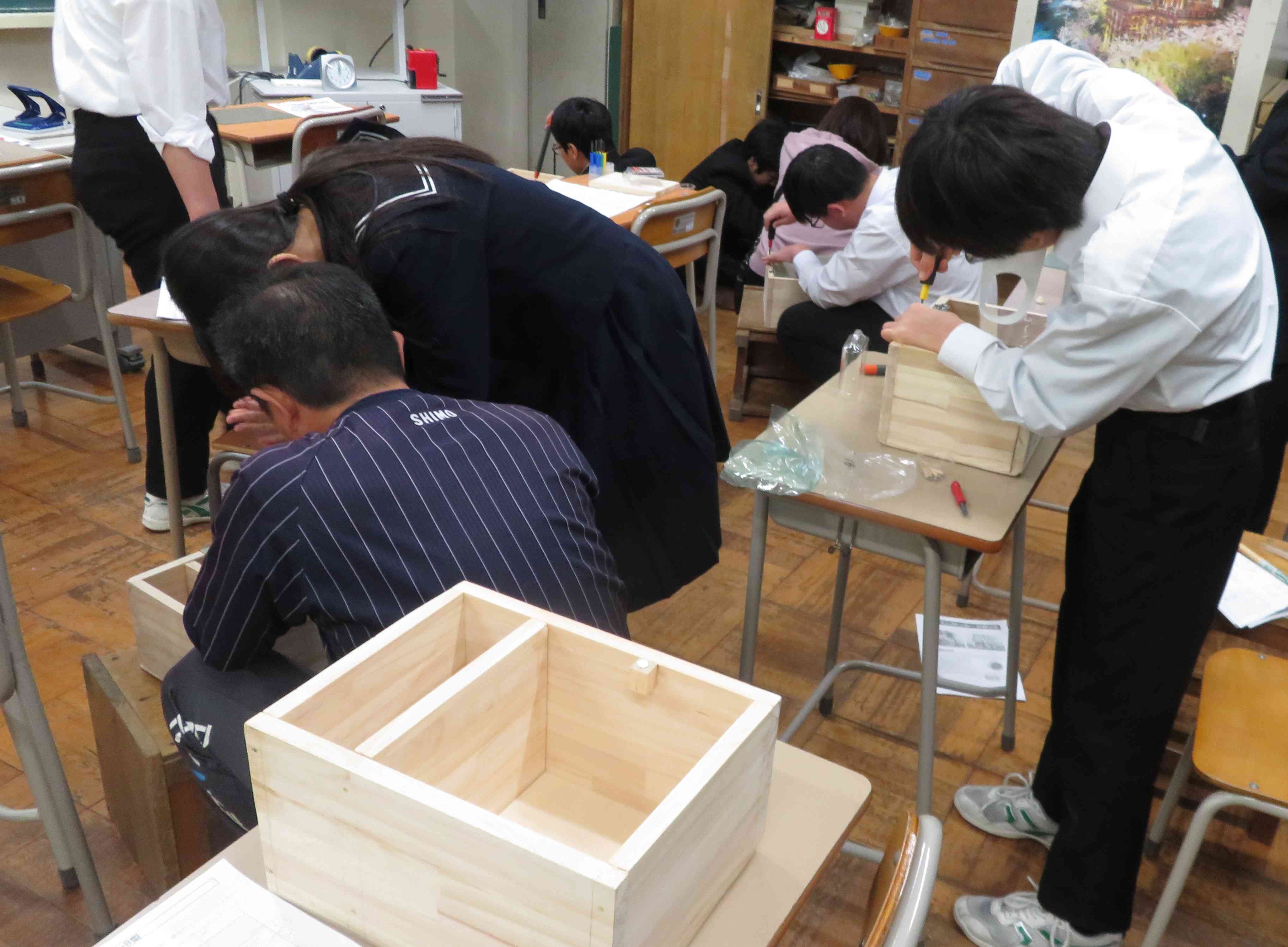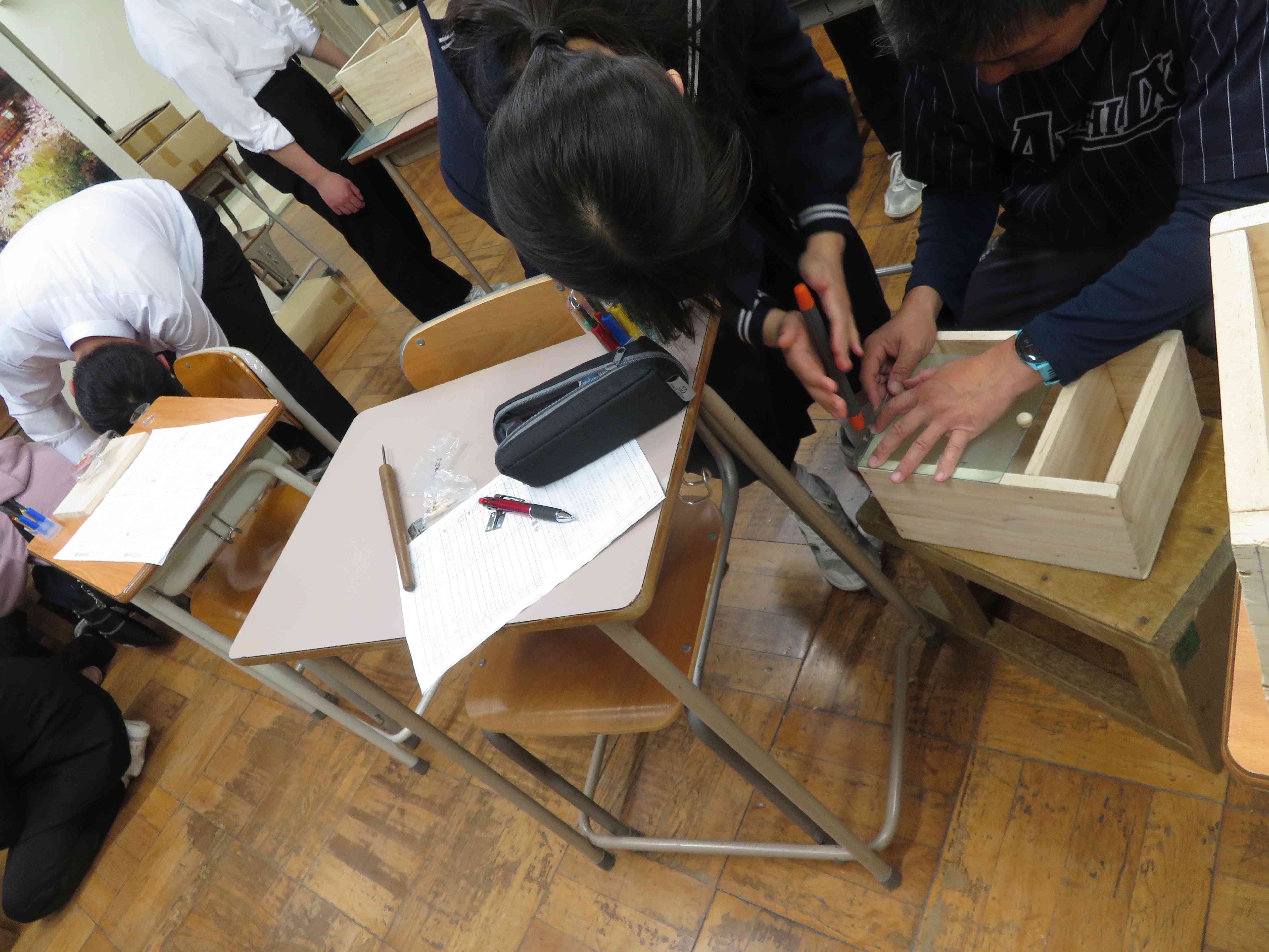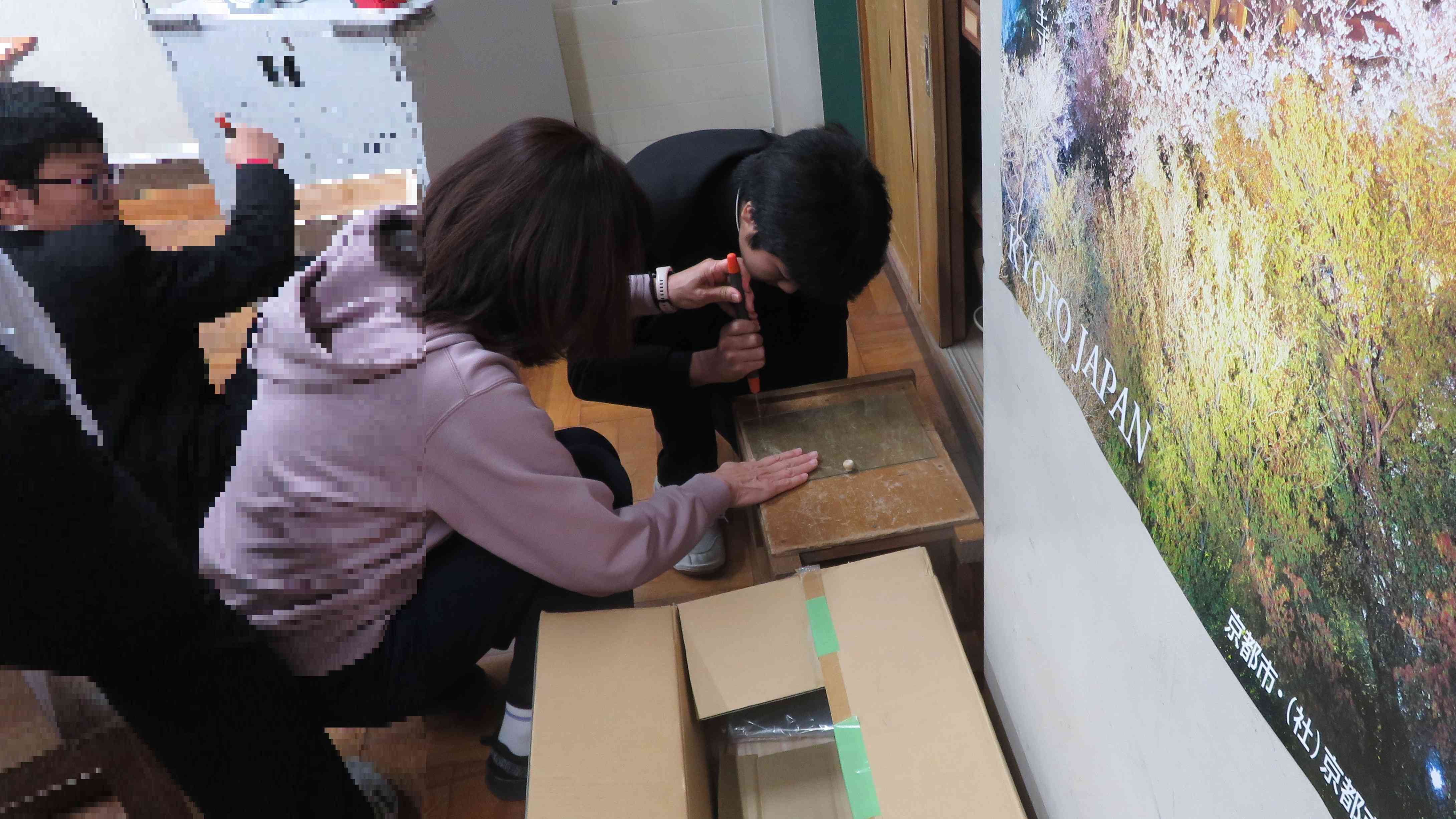 棚を制作中。寸法通りにカットし、正確に組み立てをおこなっています。